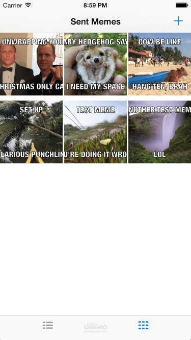 : هذا المشروع هو جزء من مقدمة لتطوير تطبيقات iOS مع دورة Swift من iOS Nanodegree في Udacity. التطبيق الذي يلتقط الصور وتراكب النص لجعل الميمات من الأصدقاء أو العائلة أو الحيوانات الأليفة. يسمح أيضًا بالمشاركة مع الآخرين عبر وسائل التواصل الاجتماعي أو البريد الإلكتروني ، وعرض الميمات السابقة في عرض الجدول أو المجموعة