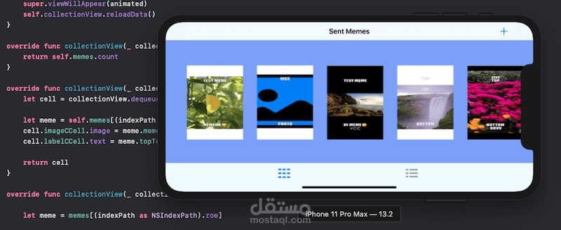 MemeMe هو تطبيق لإنشاء ميمي يتيح للمستخدم إرفاق تسمية توضيحية لصورة من هاتفه. بعد إضافة نص إلى صورة تم اختيارها من ألبوم الصور أو الكاميرا ، يمكن للمستخدم مشاركتها مع الأصدقاء.