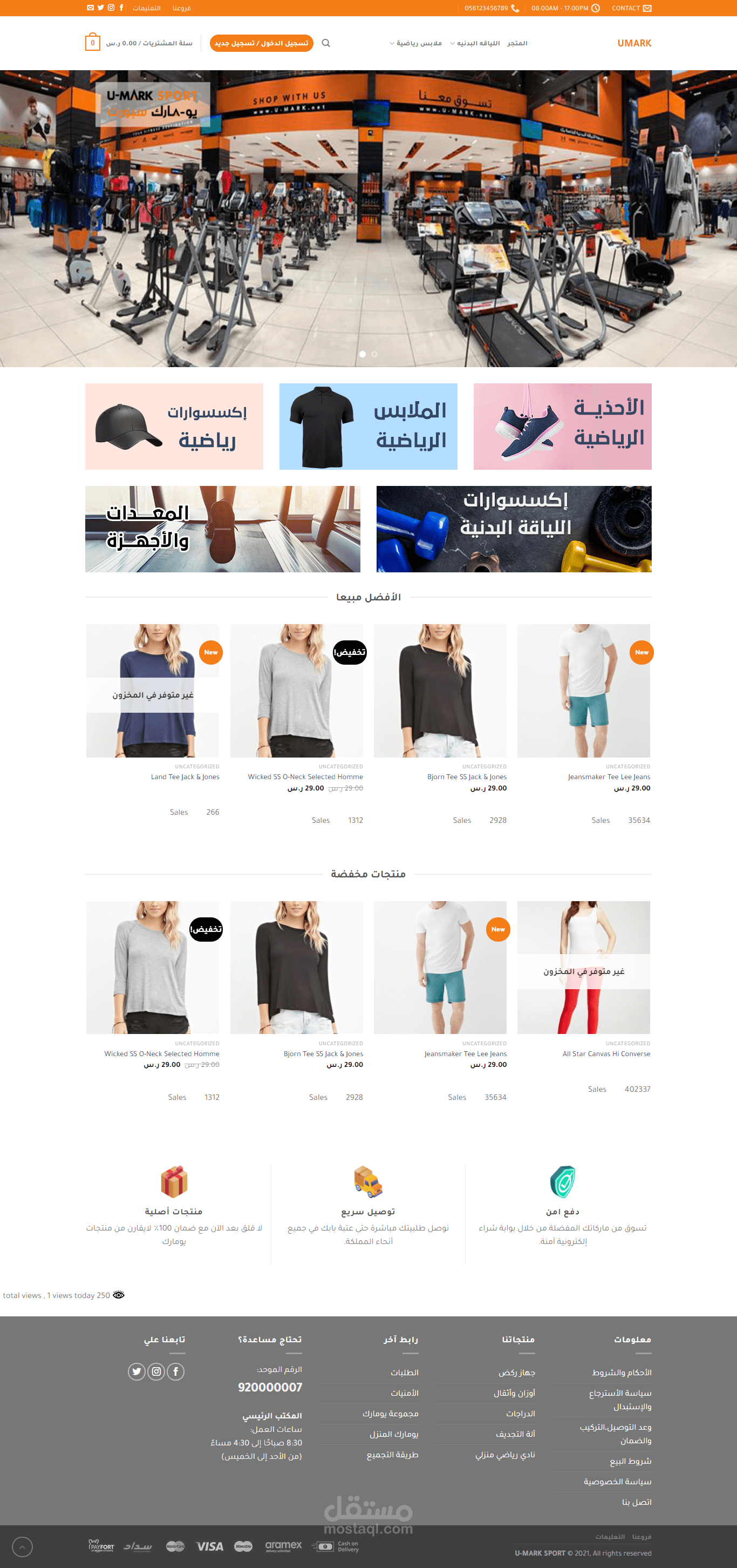 متجر يومارك سبورت للمبليس الرياضية ، والاجهزة الرياضية ، منصة العمل ووكومرس