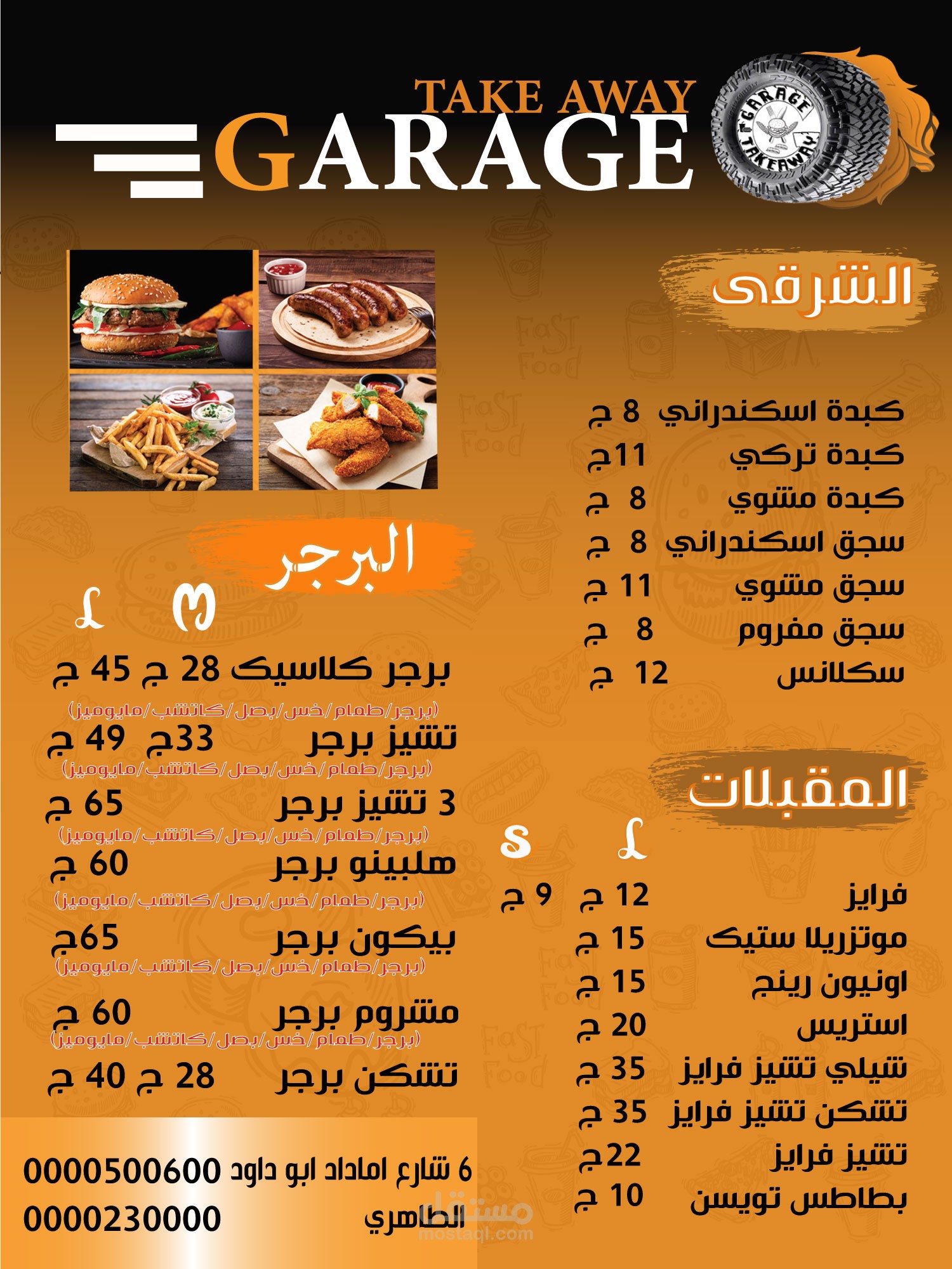 this is a Carage menu for fast food
