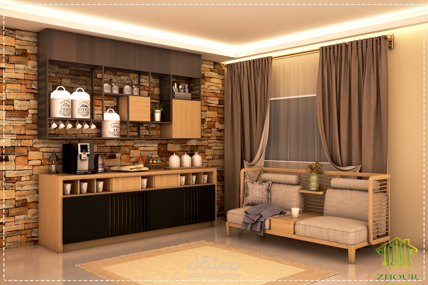 تصميم corner coffee بألوان راقية ومختلفة حيث الألوان والتنسيق المناسب .