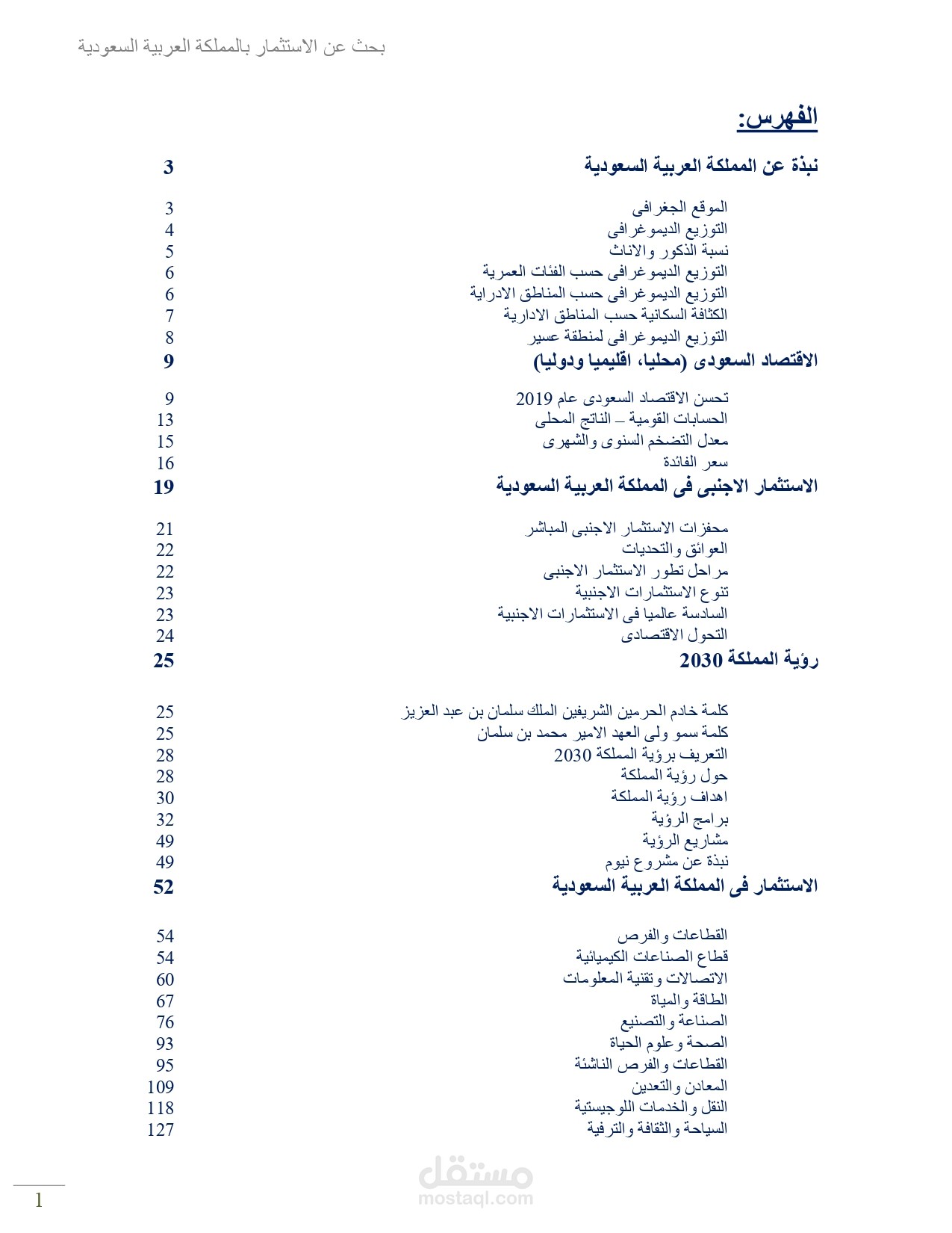 بحث عن الأستثمار بالمملكة العربية السعودية ورؤية المملكة 2030