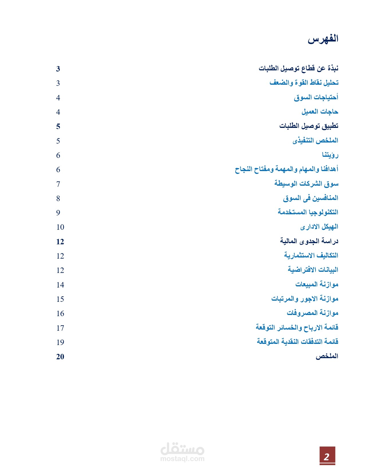الهدف من هذه الدراسة تحديد الجدوى المالية من تشغيل شركة توصيل طلبات.
