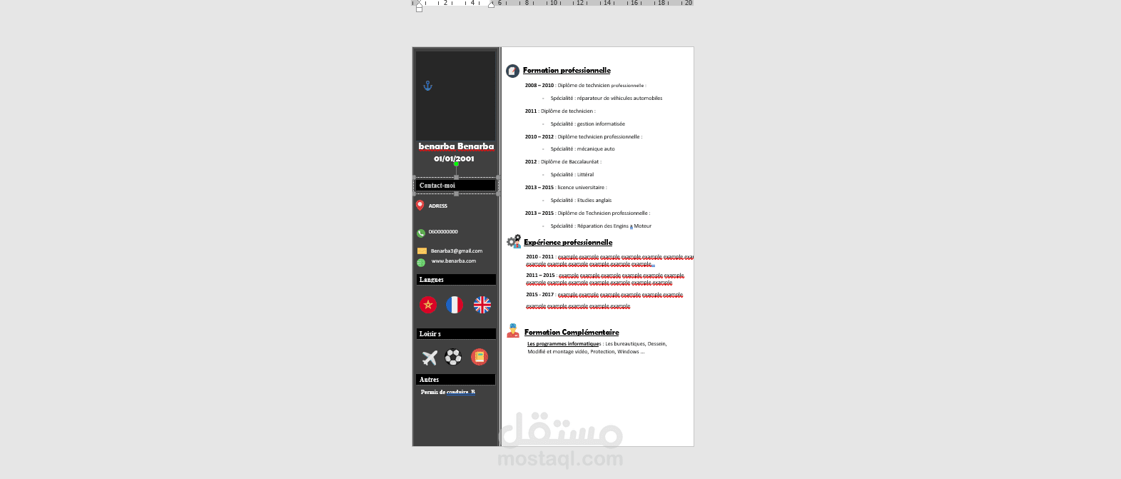 تعتبر السيرة الذاتية في زماننا هذا هي بوابة العبور للوظيفة التي يجب أن تكون دليل أول للكفاءة الشخصية خاصتك وهي أول ما ينظر إليه من صاحب العمل لذلك يجب أن تكون بشكل منسق و جميل ولغة واضحة و طريقة عرض سهلة يجب مراعاة هيئة السيرة و ترتيب المهارات و عدد الصفحات و الحشو الزائد الذي لا ينظر اليه العميل بين يديك بعض من السير الذاتية التي سبق تصميمها