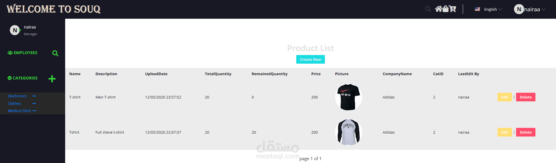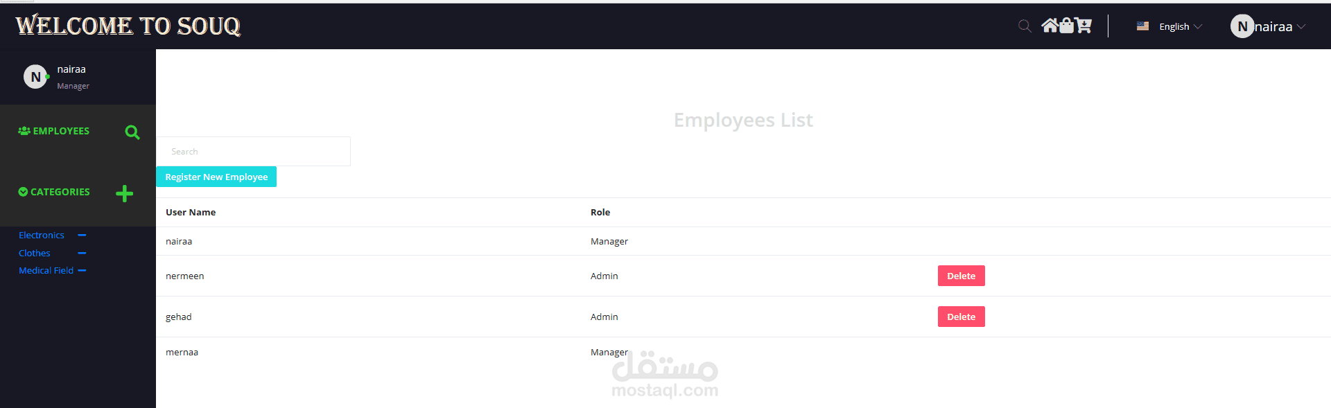 وهى اضافه وحذف ادمن وكذلك اضافه وحذف و تعديل منتج