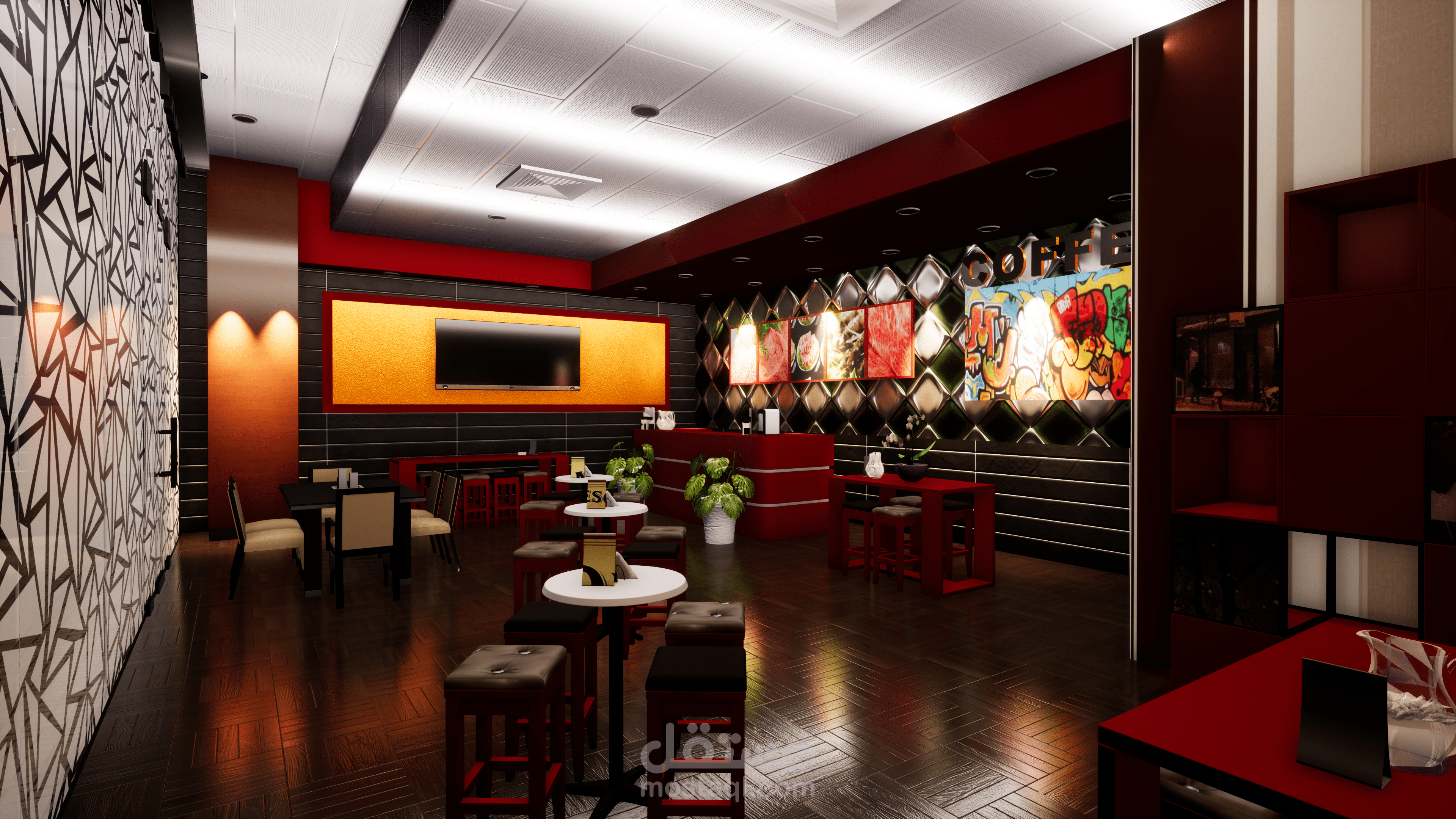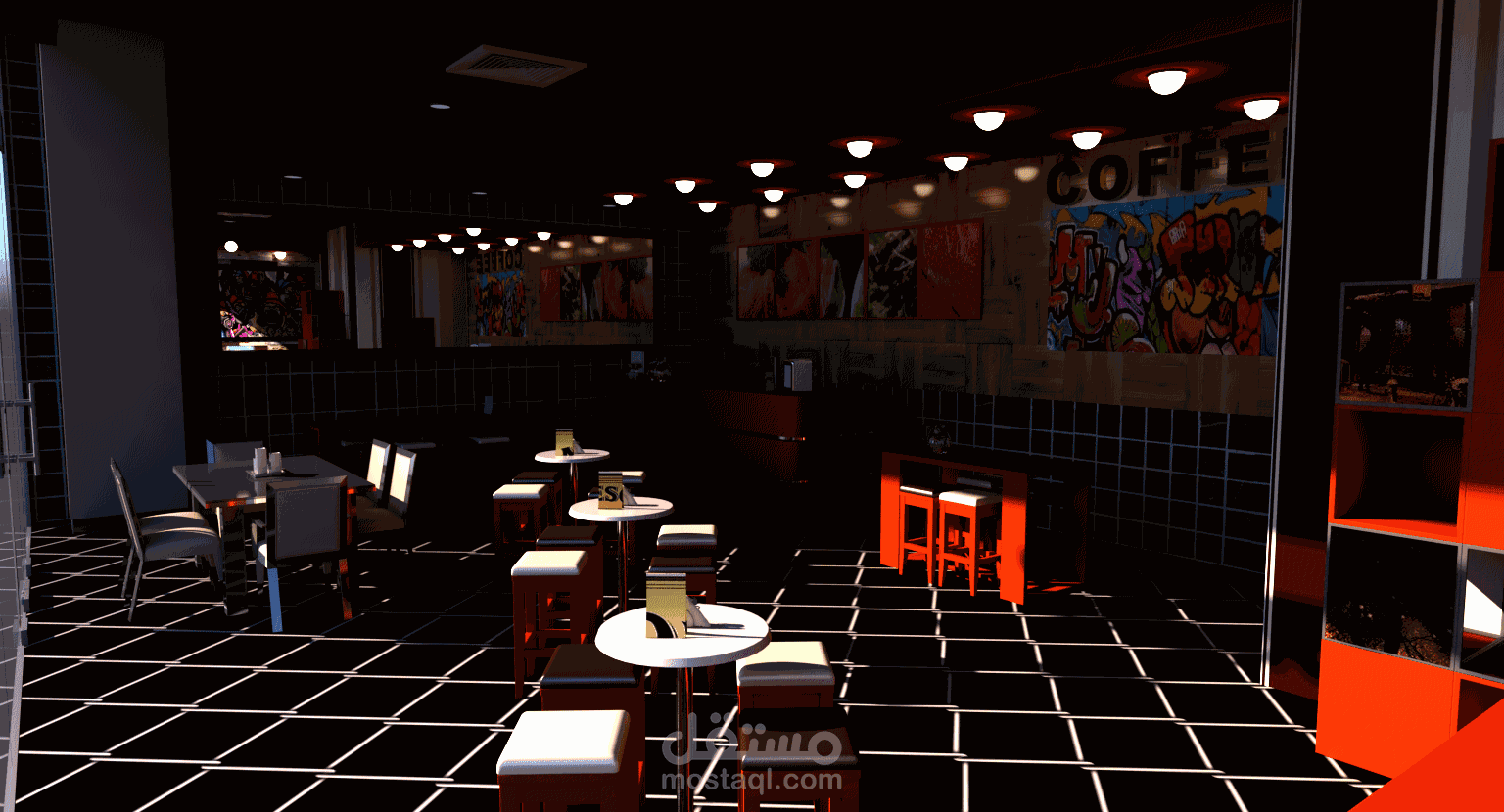 Designing caffe with all the necessary furniture for them in high quality, with the possibility of adding anything that the owner wants and access to realism for the purpose of satisfying the customer. You have a picture of my work. I hope that you like it with the possibility of setting all direct and indirect lighting systems $ 5 for every 3 meters.