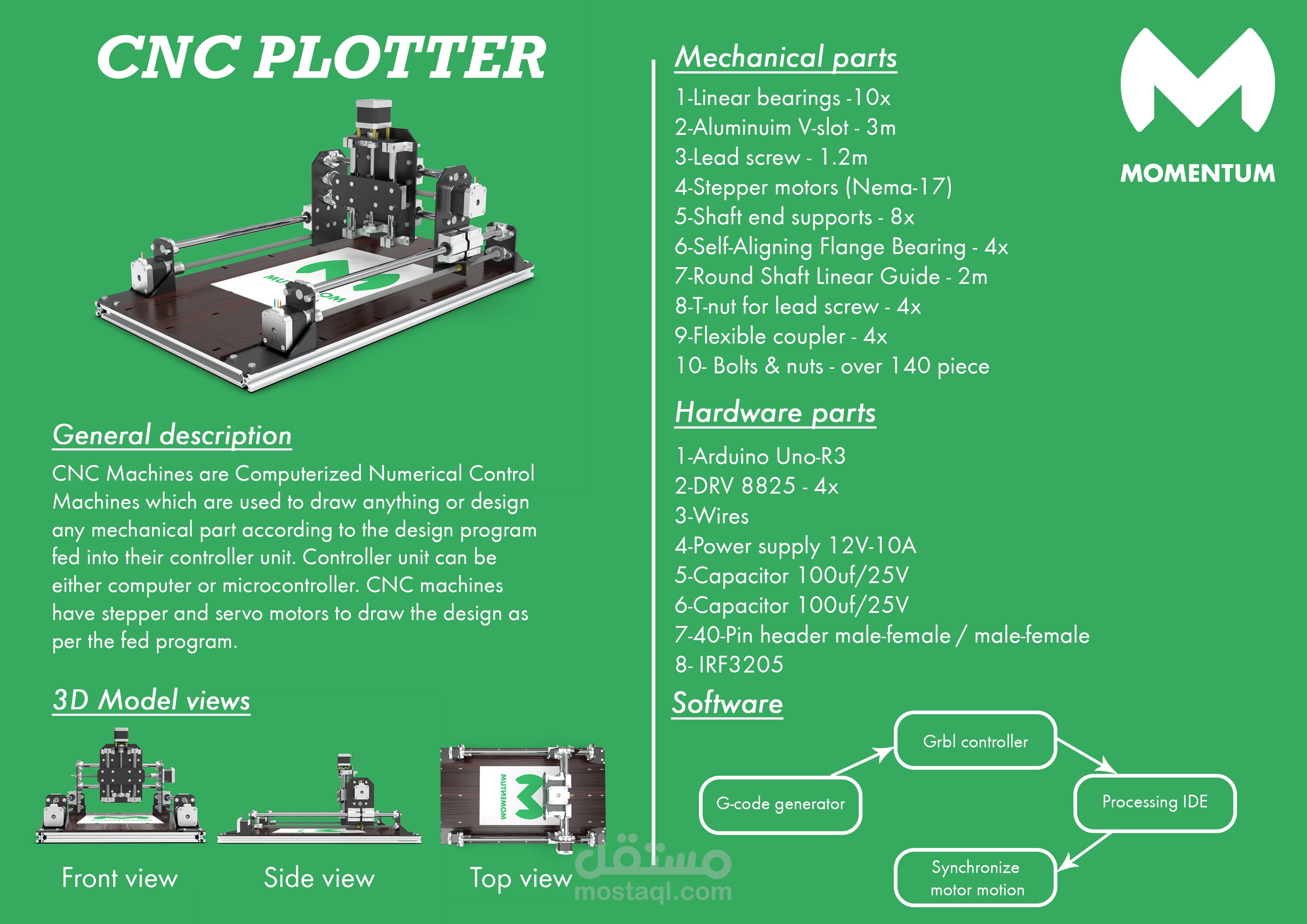 CNC Machines are Computerized Numerical Control Machines which are used to draw anything or design any mechanical part according to the design program fed into their controller unit. Controller unit can be either computer or micro-controller. CNC machines have stepper and servo motors to draw the design as per the fed program.