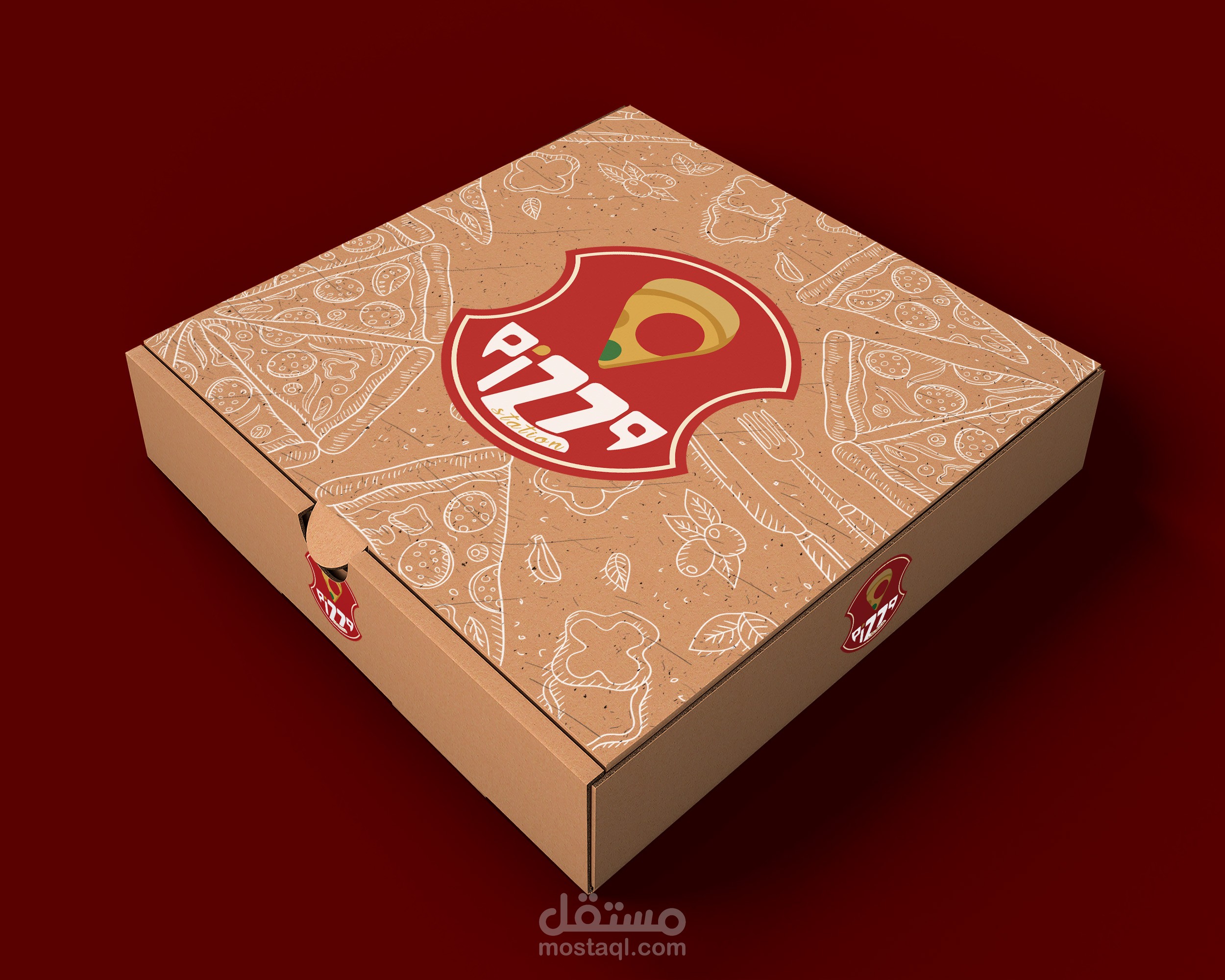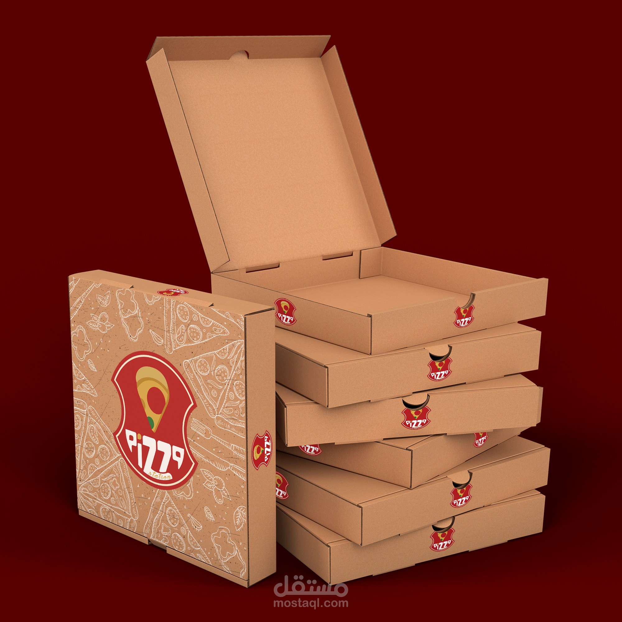 Pizza station logo design with free font and illustration