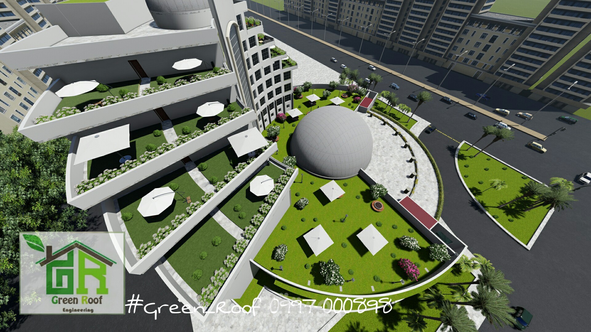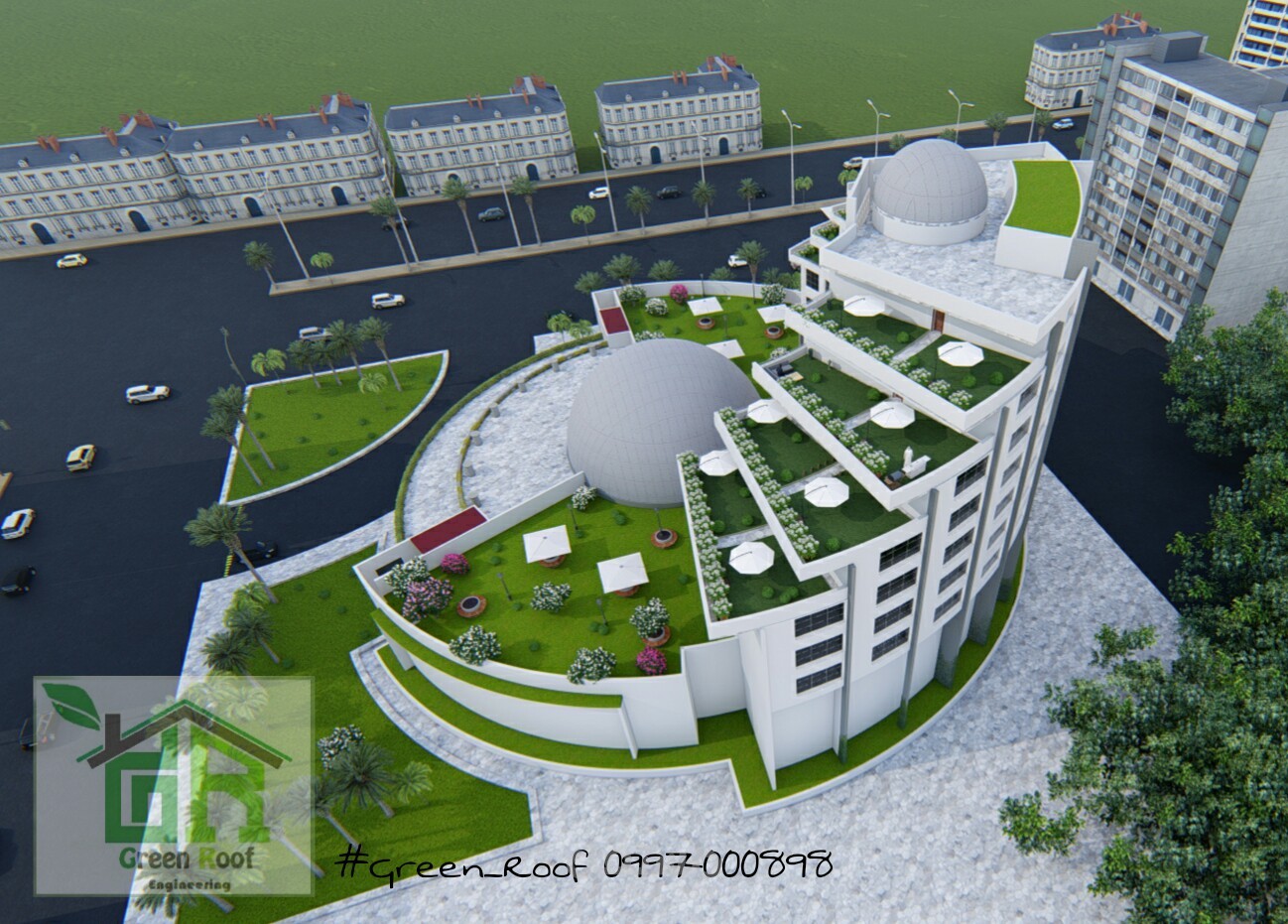 تصميم واضافة تعديلات على تصميمات الفندق وذلك بإضافة اللاند سكيب لشرفات الفندق , استغلال أمثل للشرفات واضافة جمالية للمبنى