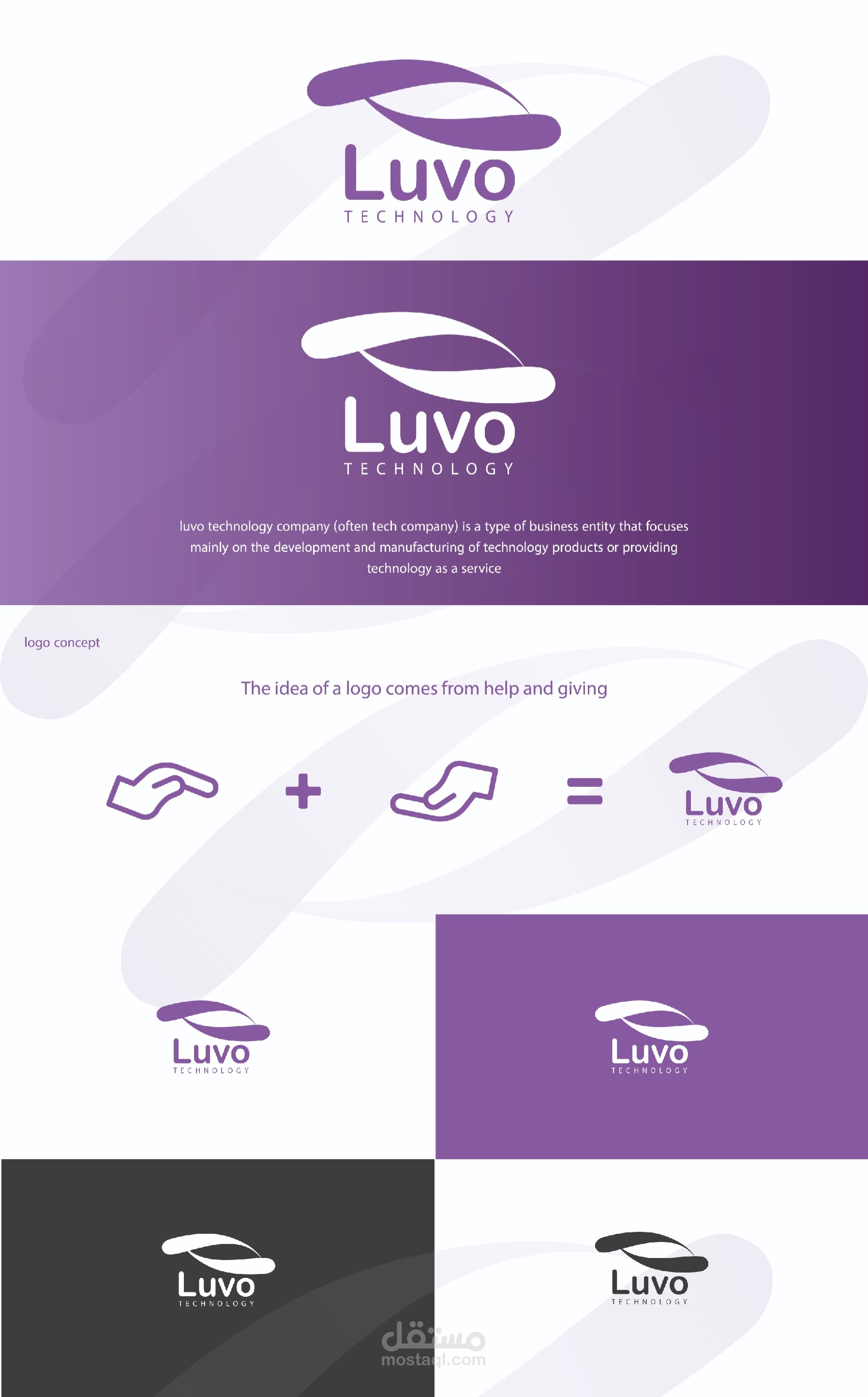 شركة luvo هي شركة للمعلوماتية تقدم يد المساعدة للأشخاص في مجالها ومنه أتت فكرة التصميم من فكرة المساعدة حيث قمنا بتصميم الشعار على شكل كفين للإنسان يمسكان ببعض