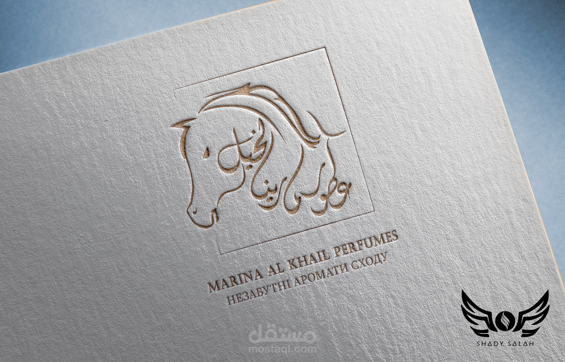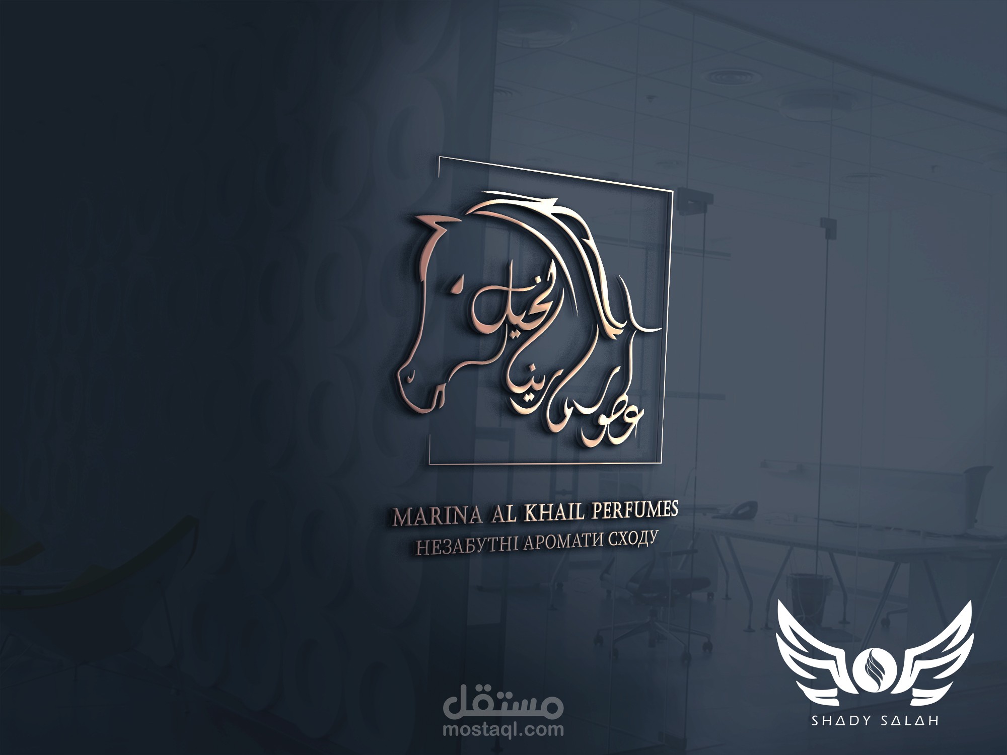 شعار احترافي يدمج الاصالة العربية مع الخيل العربي الاصيل في العطور