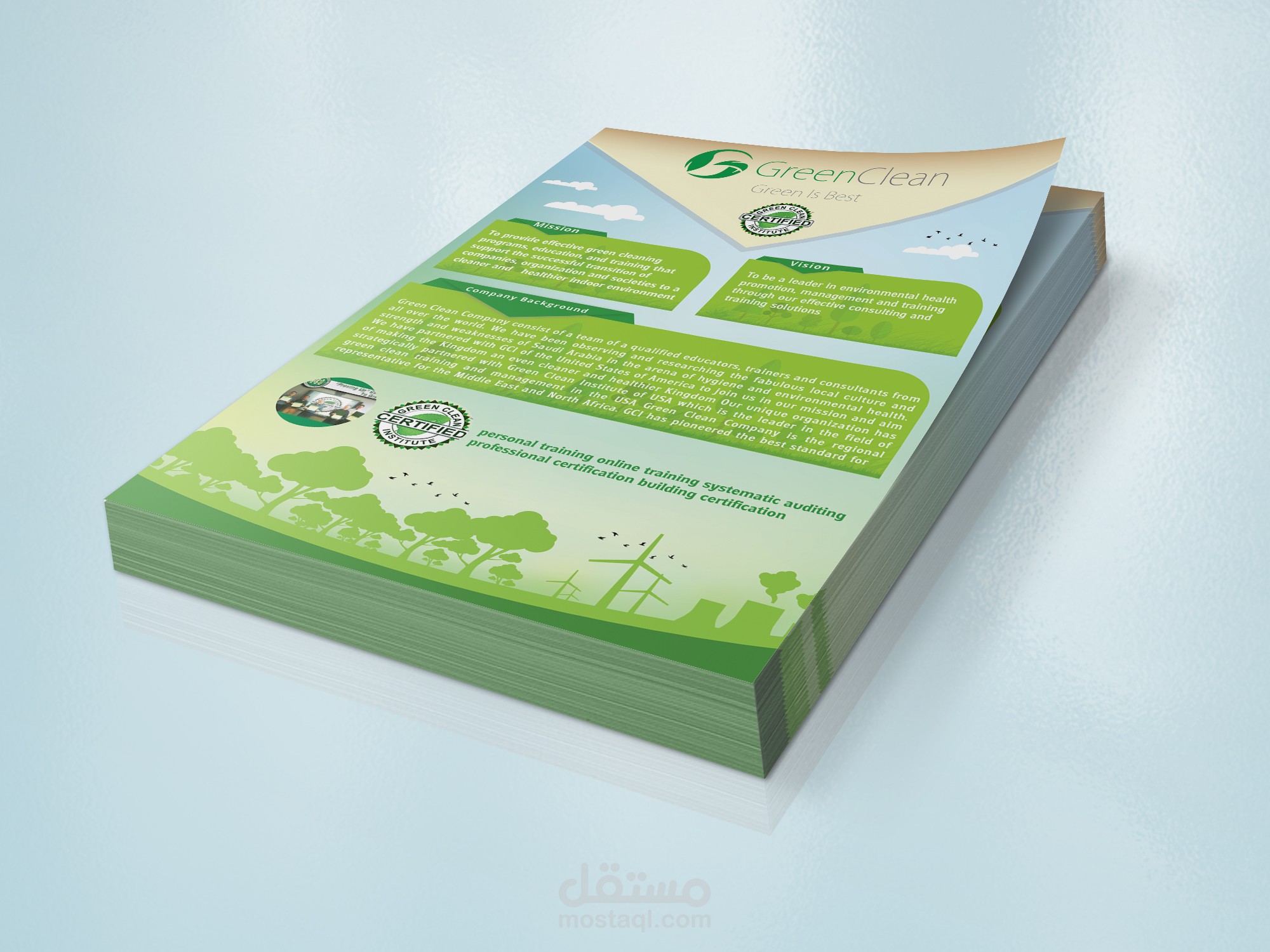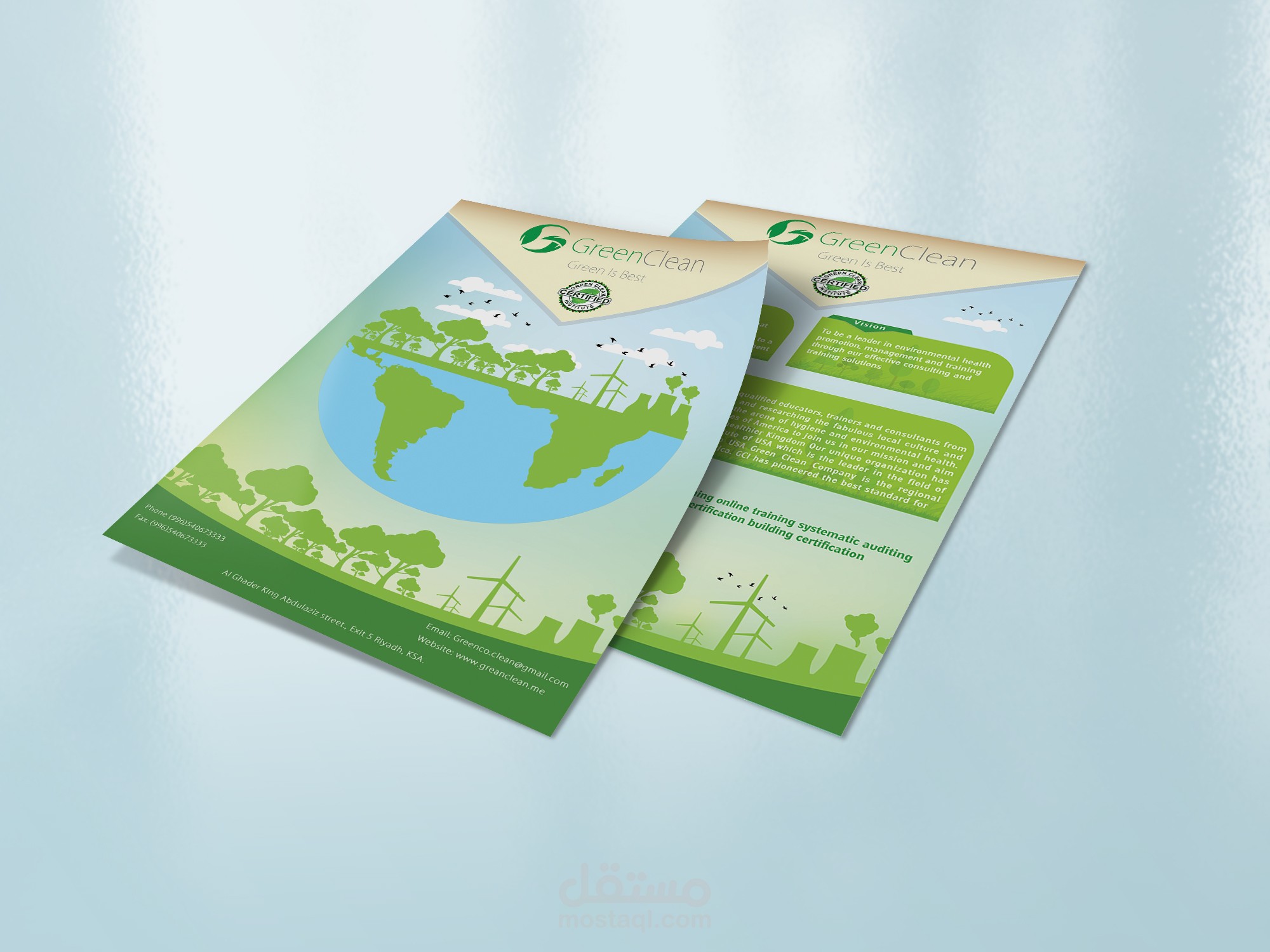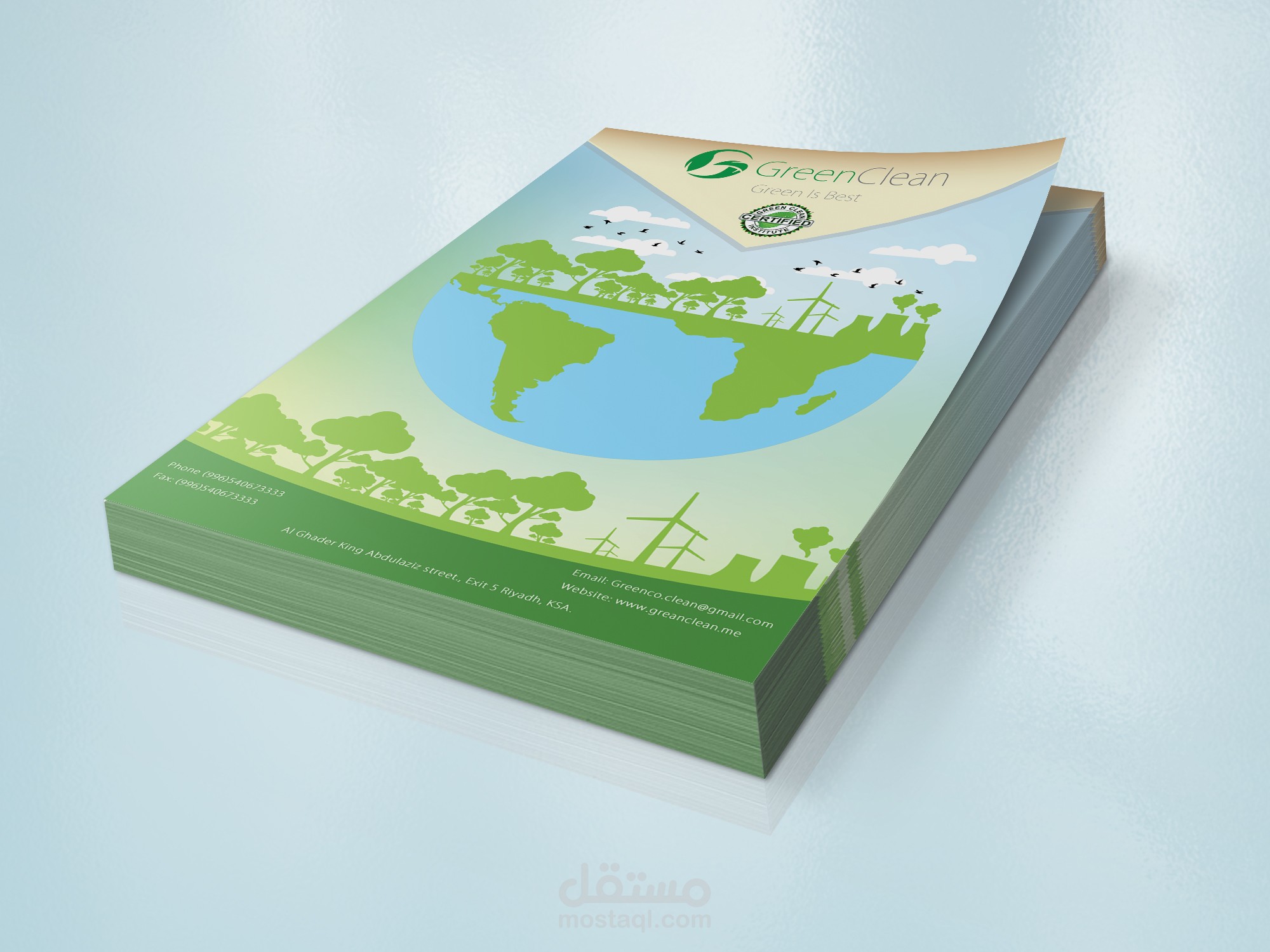 تصميم مقترح لشركة Green Clean عن النظافة والحفاظ على بيئتنا لجعلها جميلة