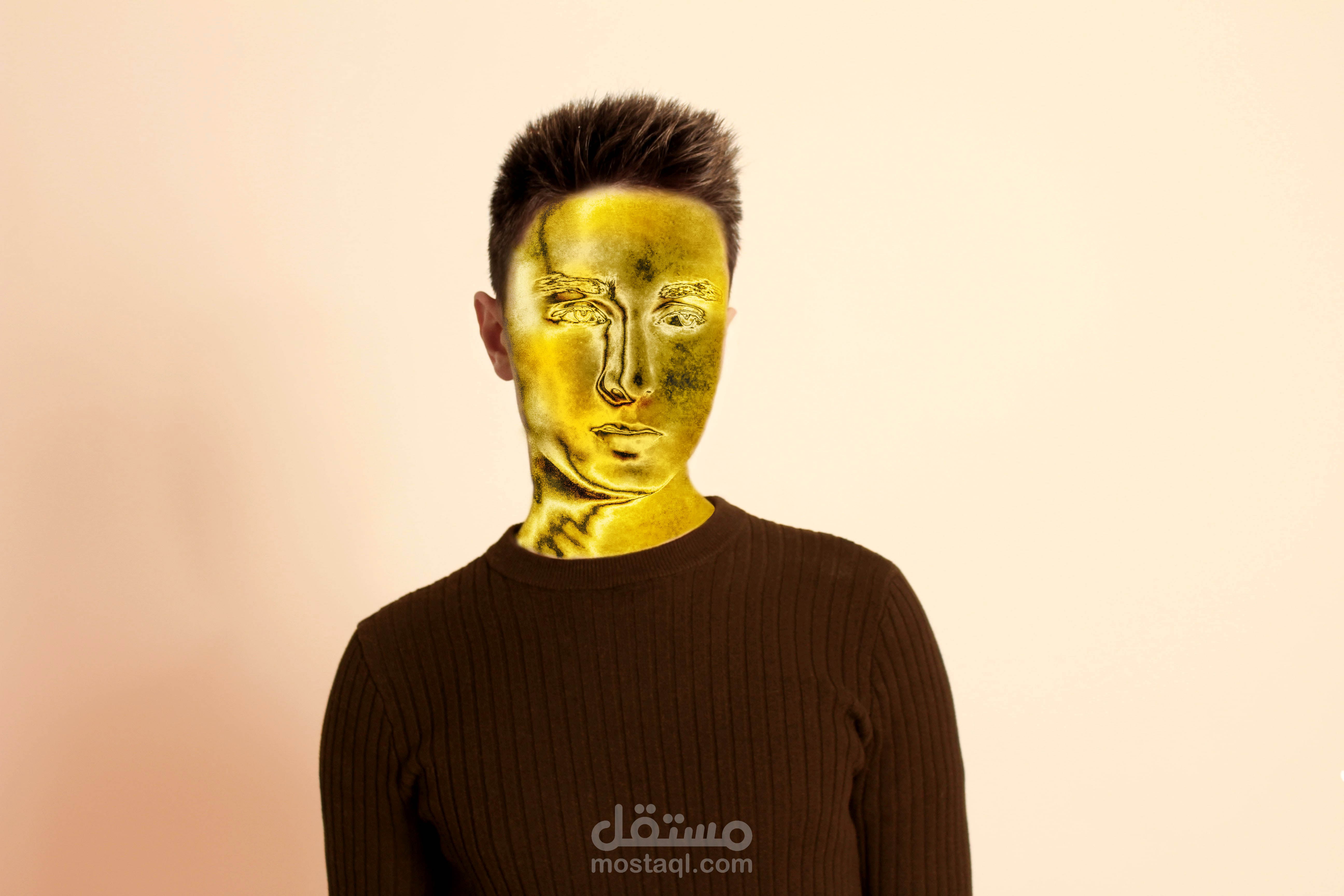In this picture i will put gold effect on young men face , and i will manipulate it to become more realistic.