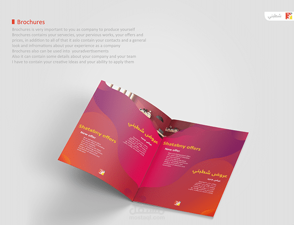 Brochures designs for Shatabny project It's part of full brand identity I had designed Contains cards, mugs, cups, uniforms, brochures and ID cards.. etc.