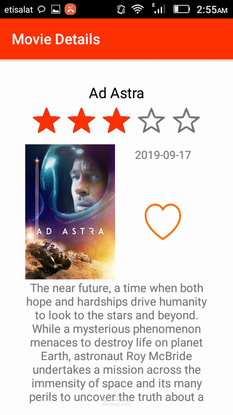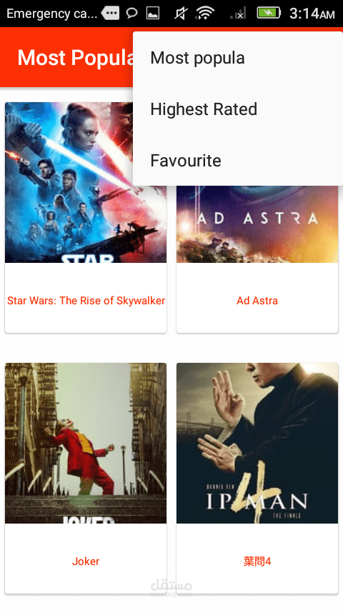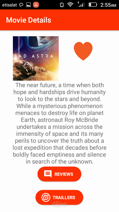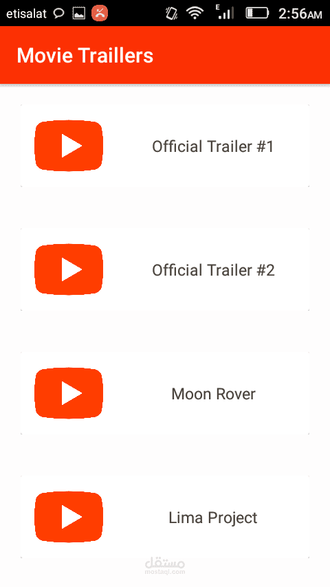 تطبيق لعرض trailers احدث الافلام الاكثر شيوعا والاعلى تقييم كما يمكن للمستخدم حفظ الفيلم فلى قائمة المفضلة للاطلاع عليه لاحقا