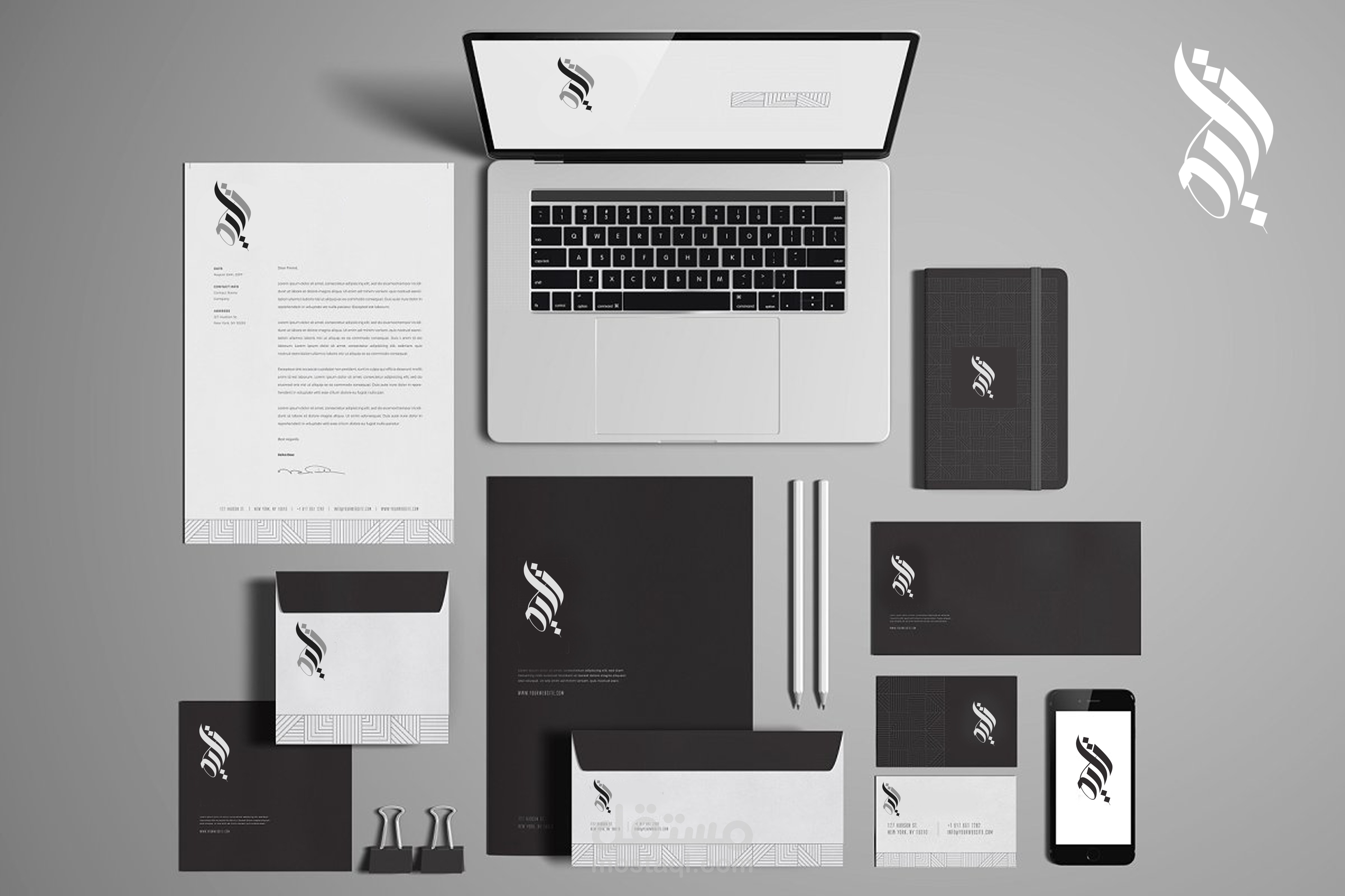 تم التصميم بالخط الكاليغرافي العربي حيث أن الحرف العربي يرمز الي الاقدمية و الموروث و ذلك ينبع من اسم الشعار (تليد) فقد اتى اسم التصميم تعبيراً عن الاسم