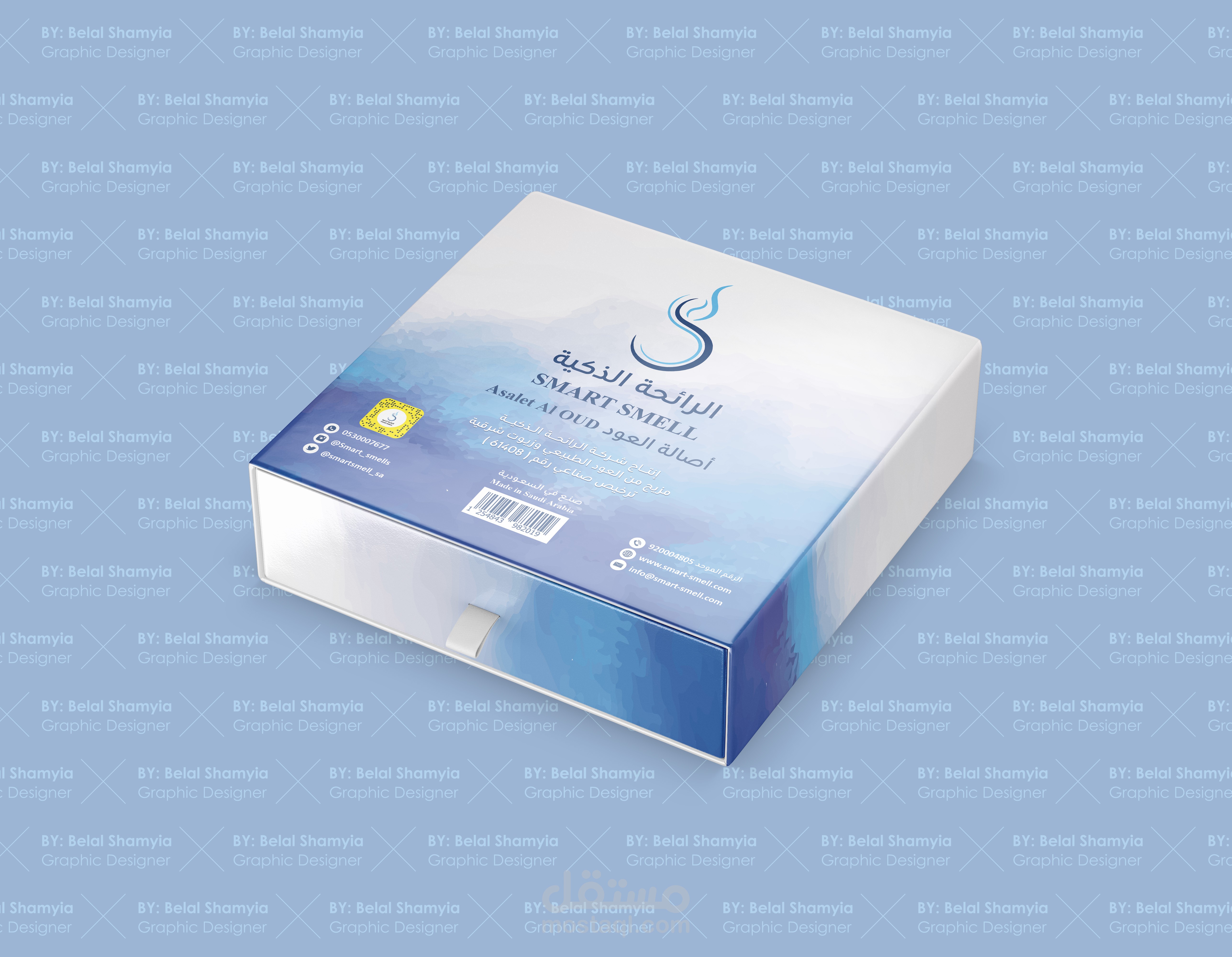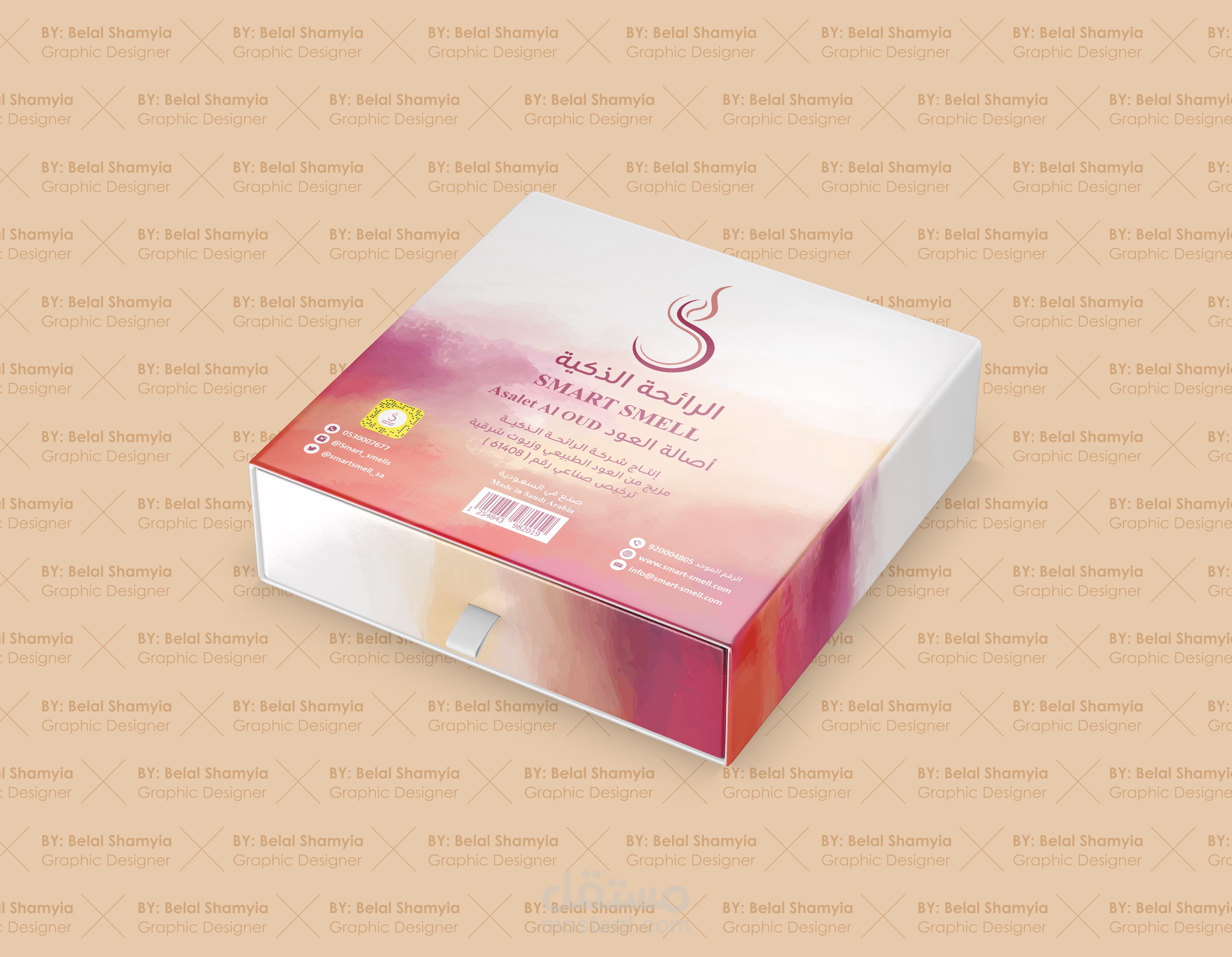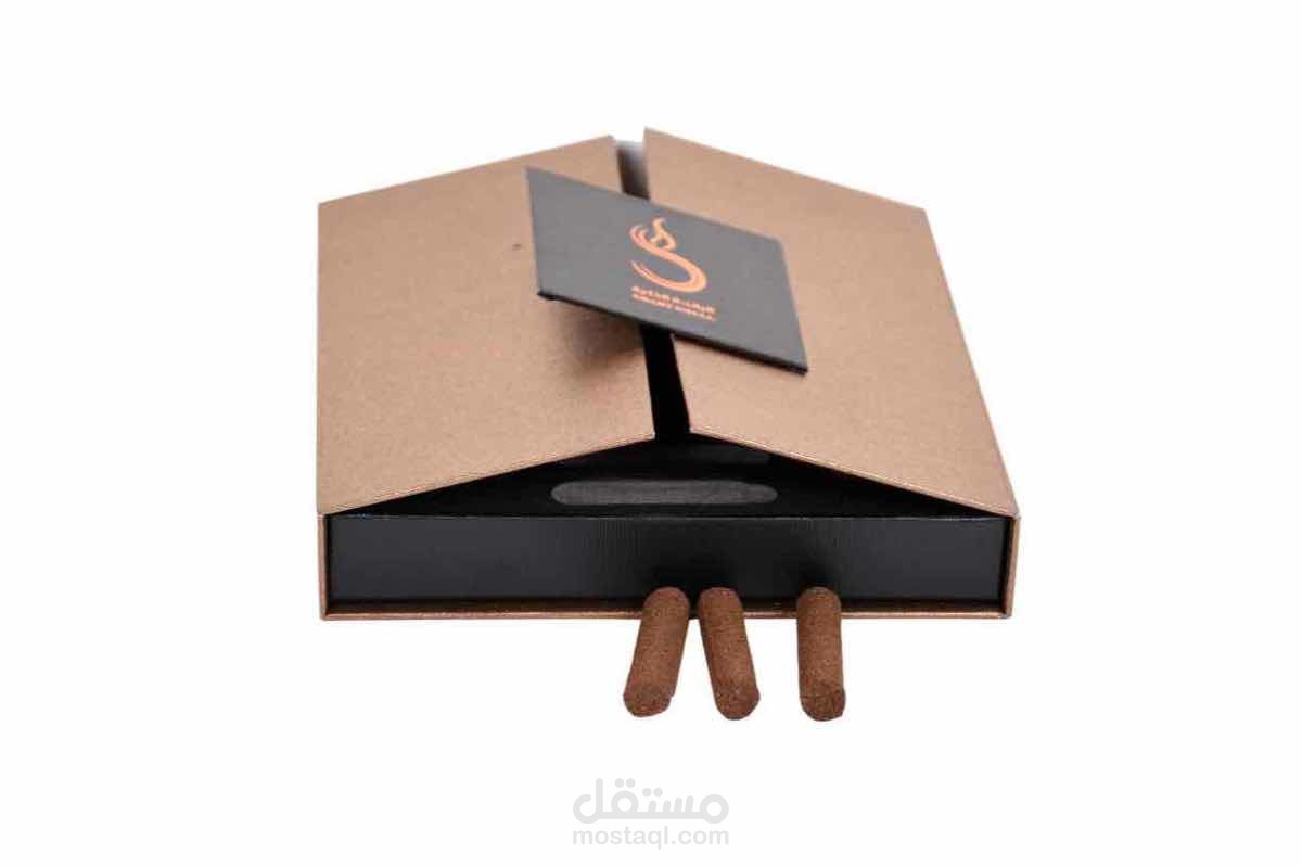 تصميم كرتونة مربعة الشكل لمنتج عود ذكي - الرائحة الذكية - السعودية
