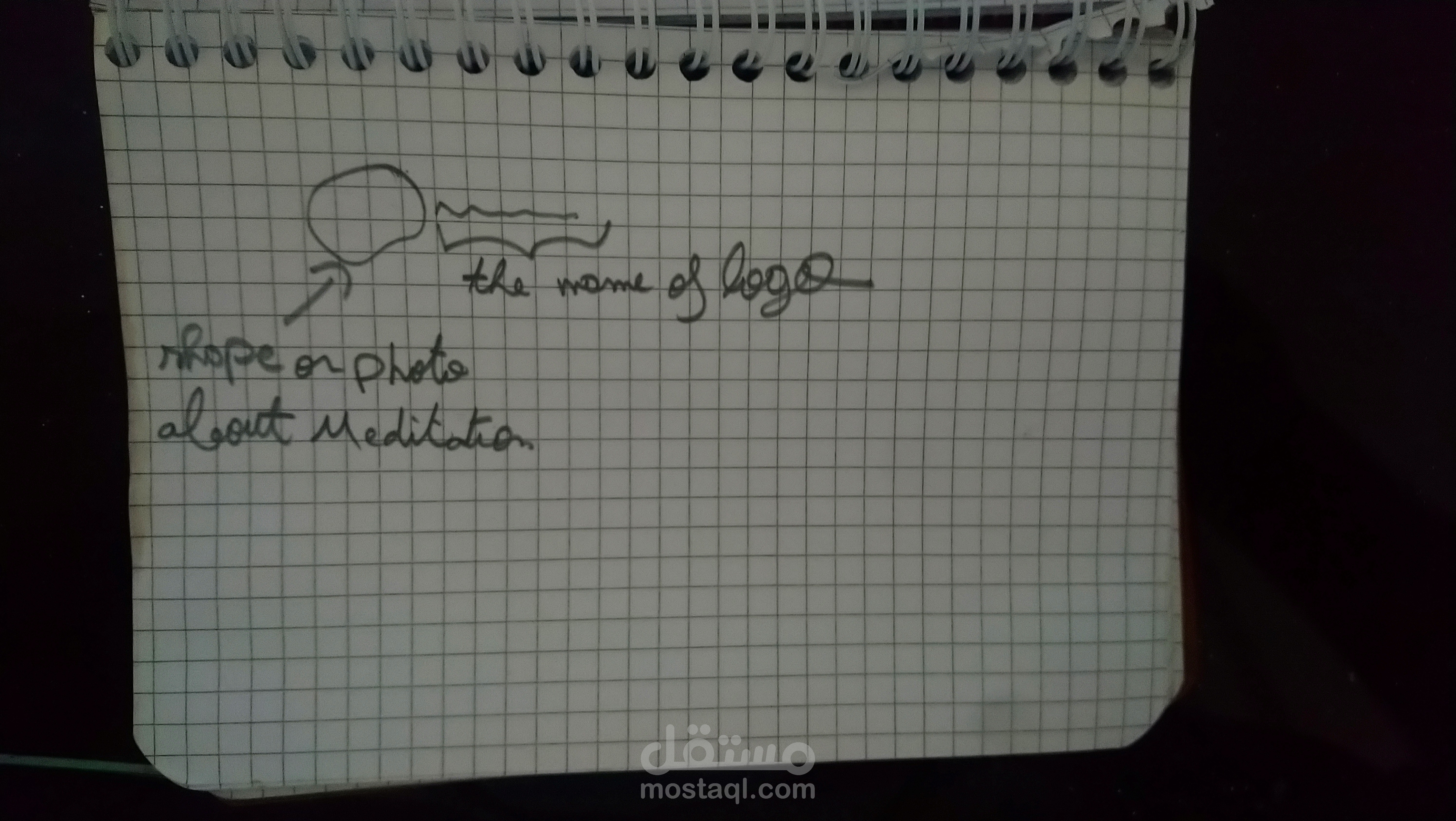-The logo speaks of meditation. I was inspired by the idea of the logo from meditation and imagined that the logo will be a drawing of meditation with the desired name of the entrepreneur so I put the idea on the paper as you will see in the picture and then started designing it in the program.