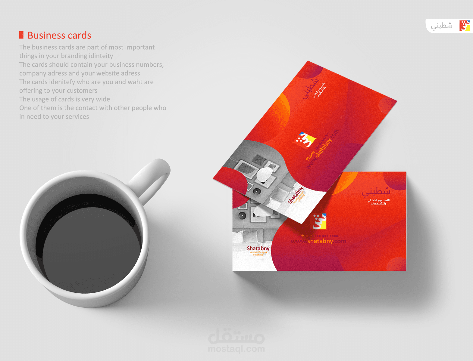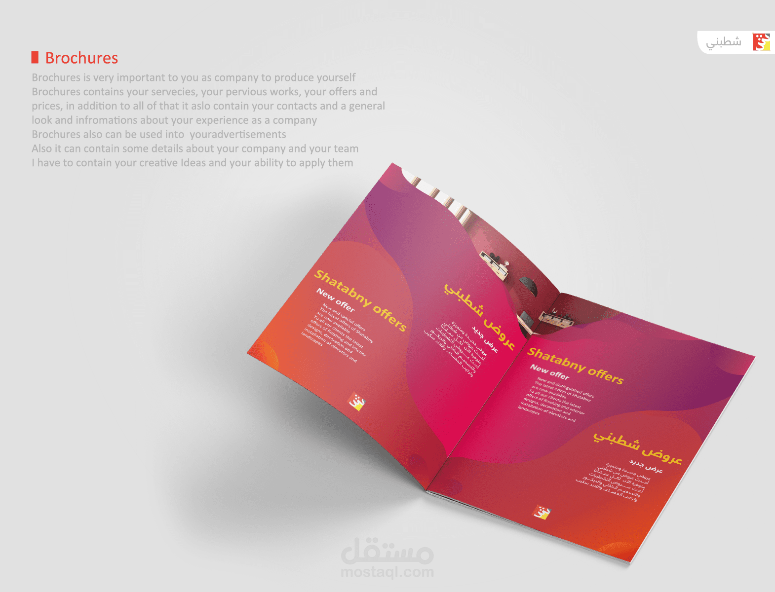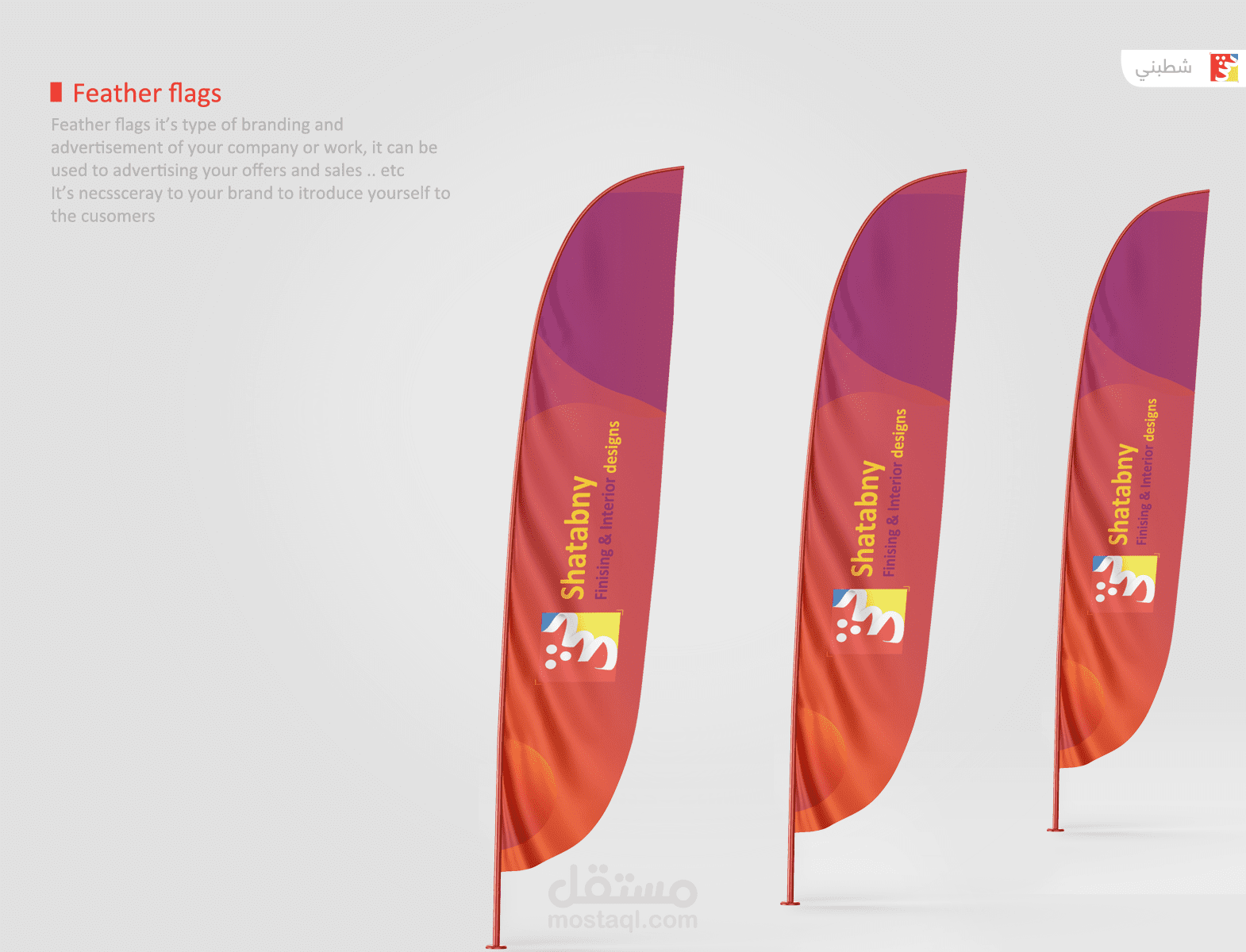 Shatabny full brand identity designed a full project contain logo, business cards, Id cards, banner flags, badges, uniform, cups and brochures, also contain mockups that showing the book how it look like after printing , the full project designed by me and the design is imaginary not real and all the rights reserved - copy not allowed - reusing not allowed