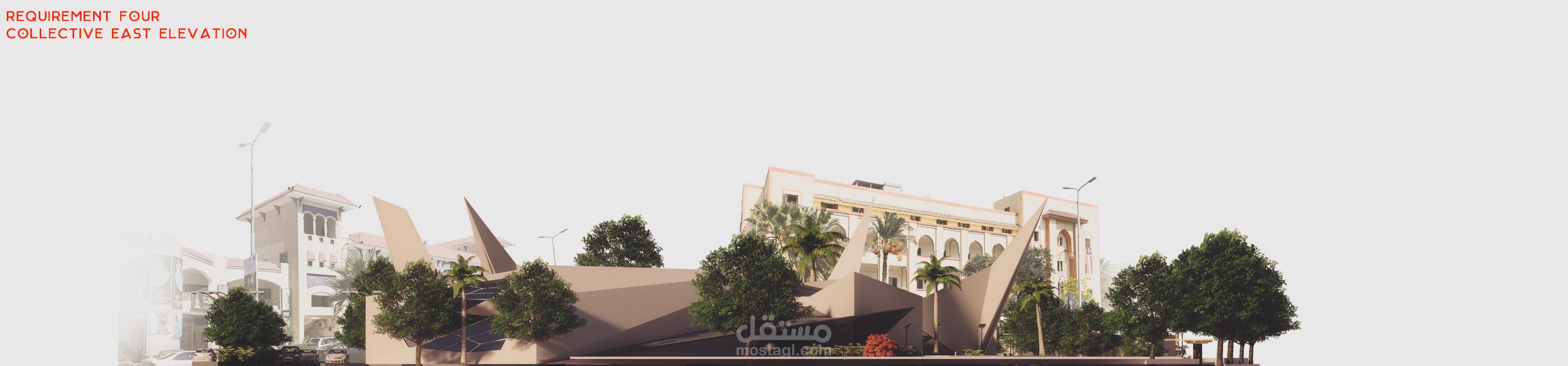 Architecture Elevation 3D design and Rendered Shots in a Storytelling Centre in Portsaid