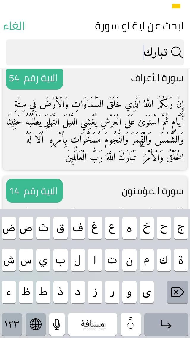 برنامج اسلامي لقراءة القرآن الكريم و التفسير الميسر لكل اية و سماع الاية والبحث عن اية معينة
