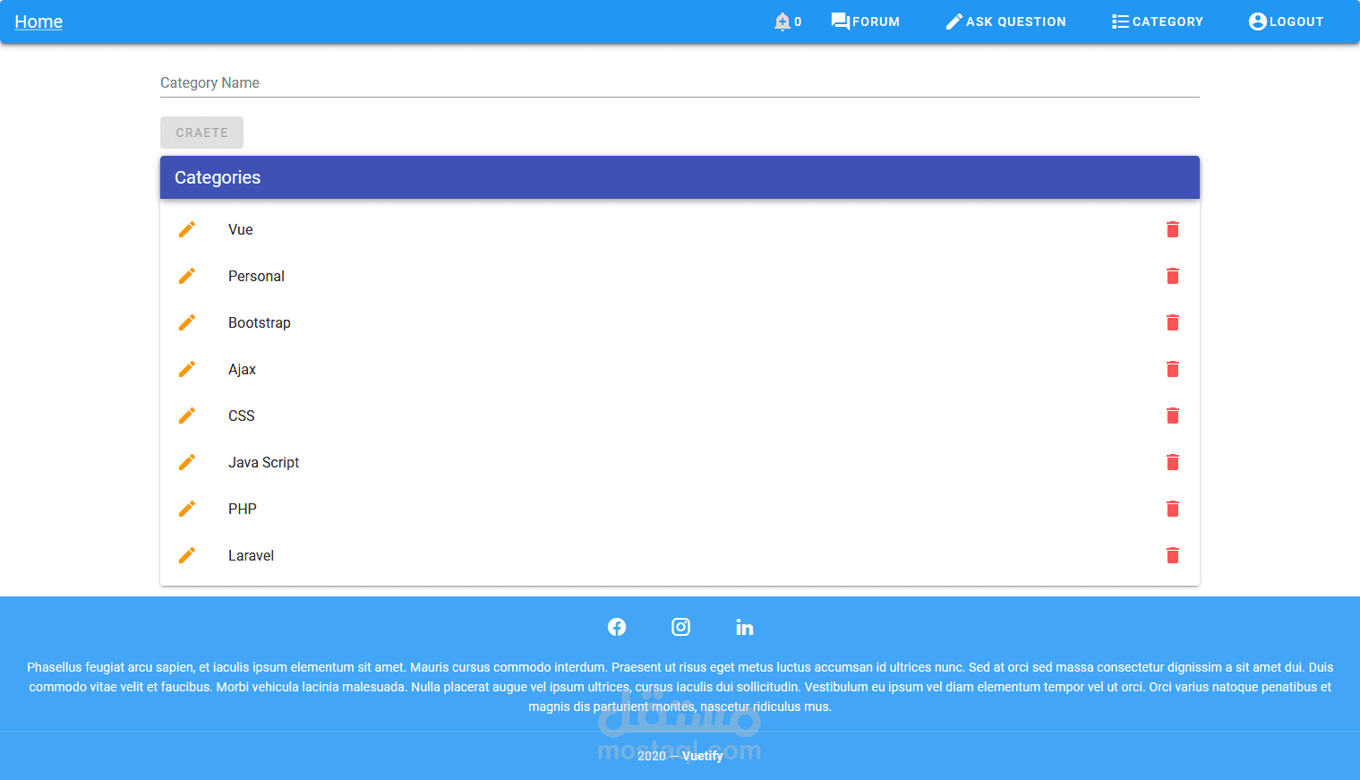 This Project allows the authenticated users to ask question with a category which is available the website,