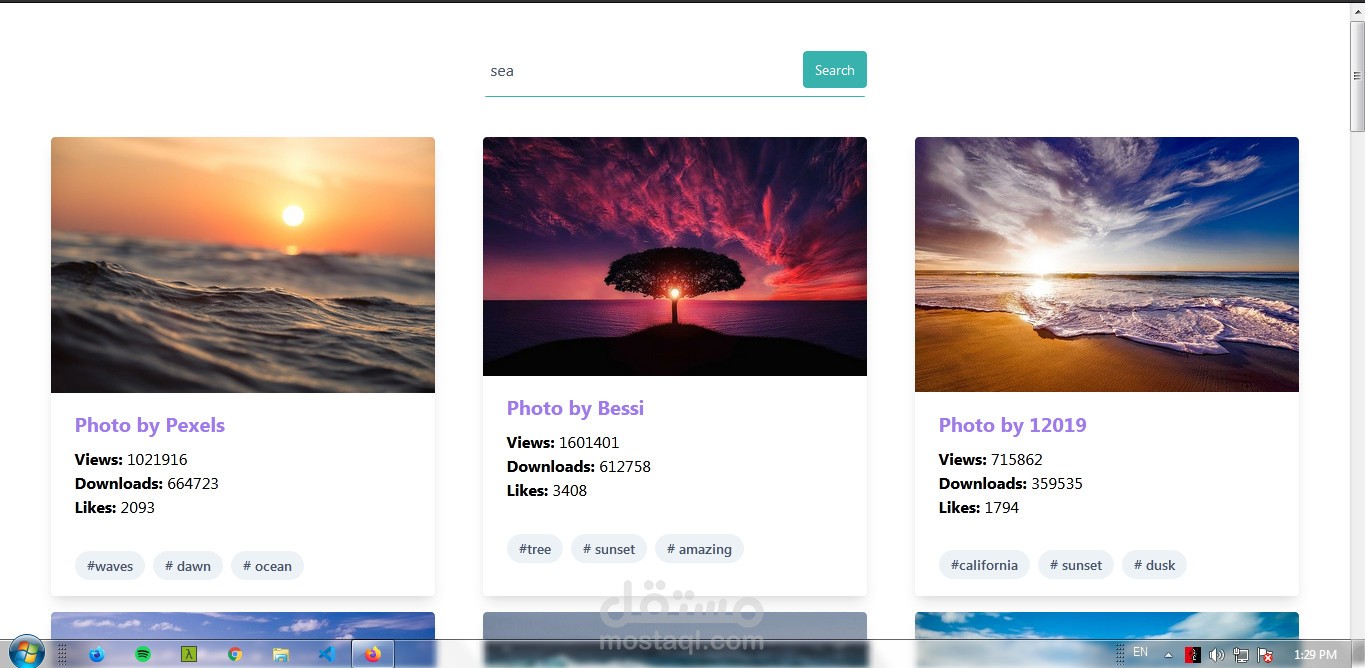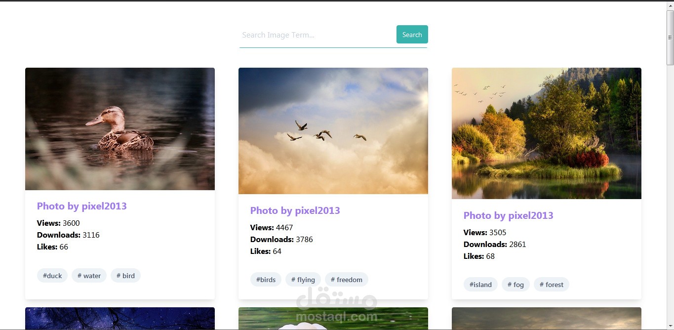 تطبيق ويب يعتمد علي pixabay api بعرض صور جديدة و البحث عن أي صورة