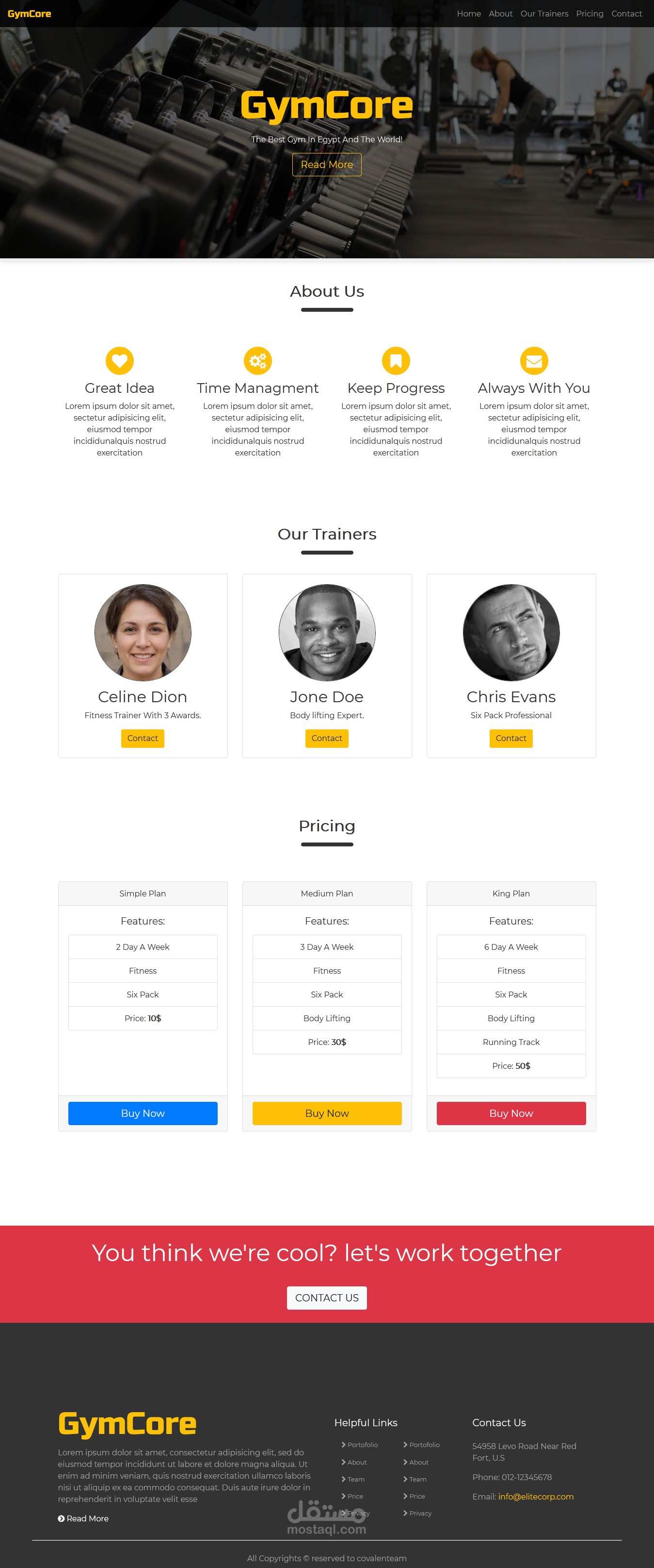 موقع جيم كامل متجاوب مبني ببوتستراب و جيكويري و HTML و CSS
