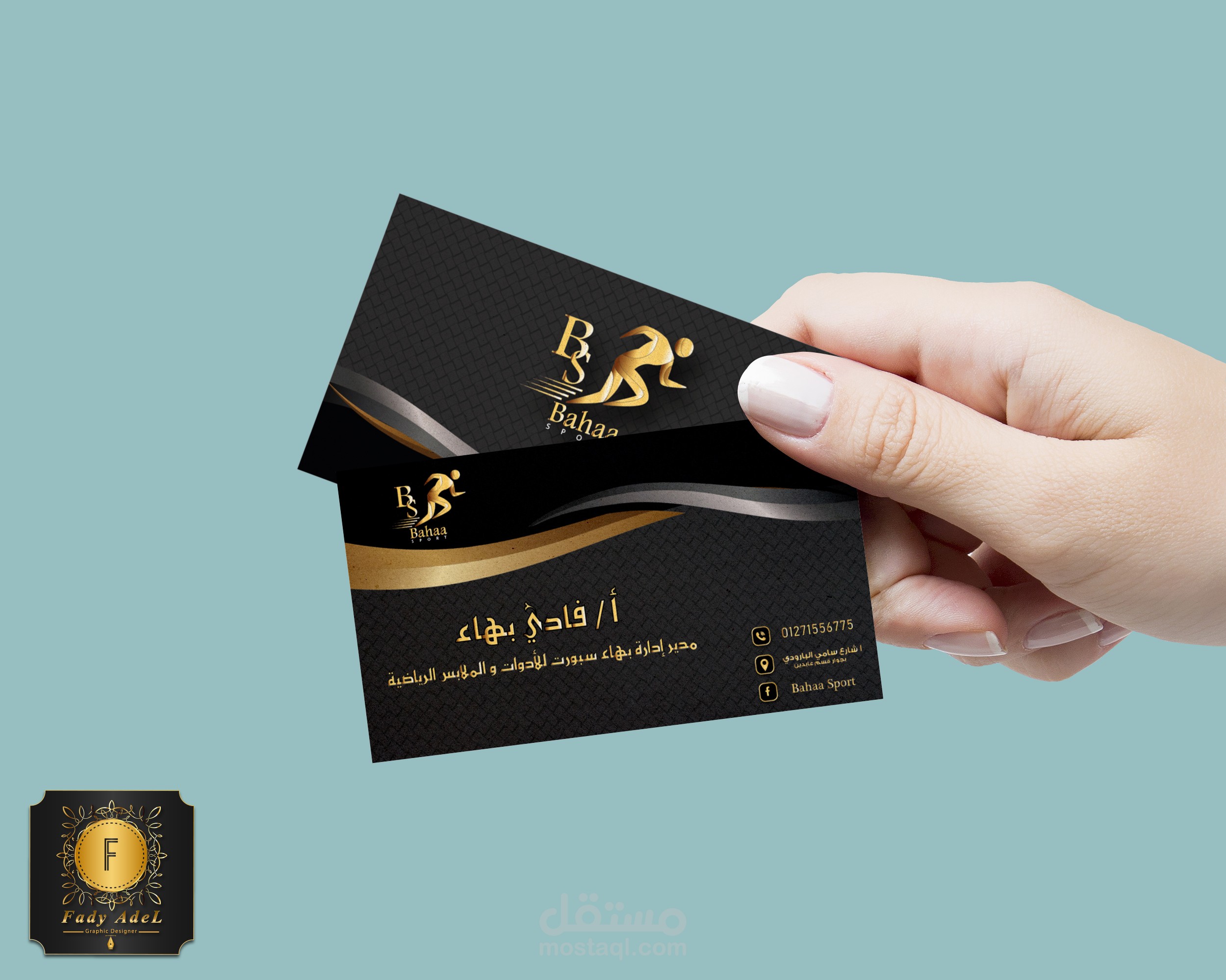Design a business card for Bahaa Sport