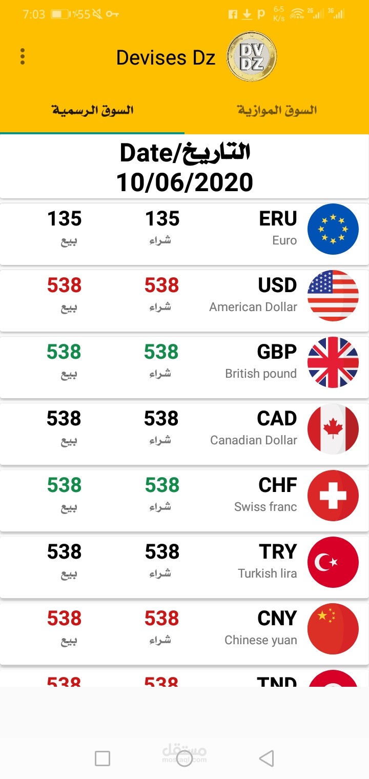 تطبيق Devises Dz لمعرفة اسعار العملات