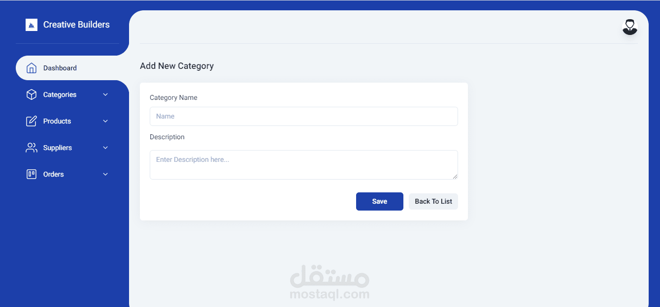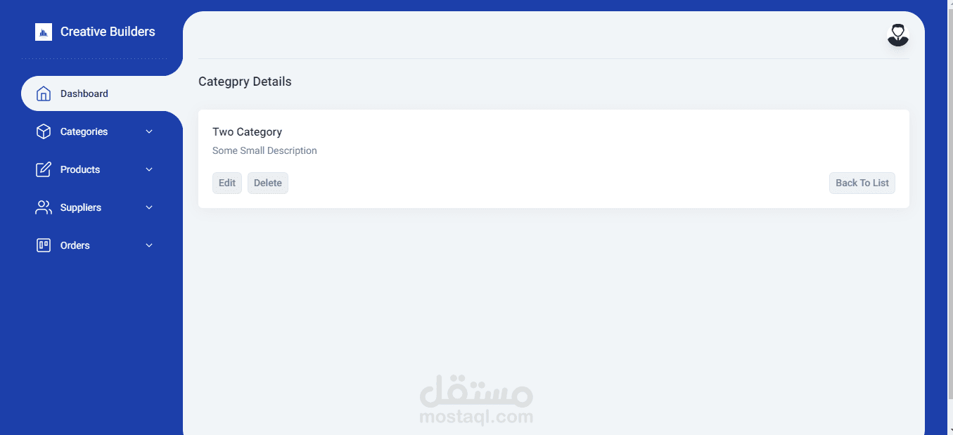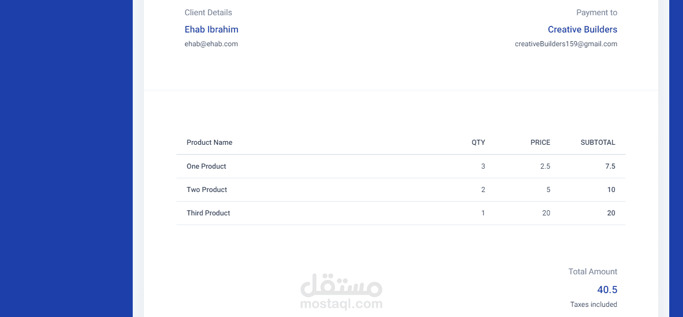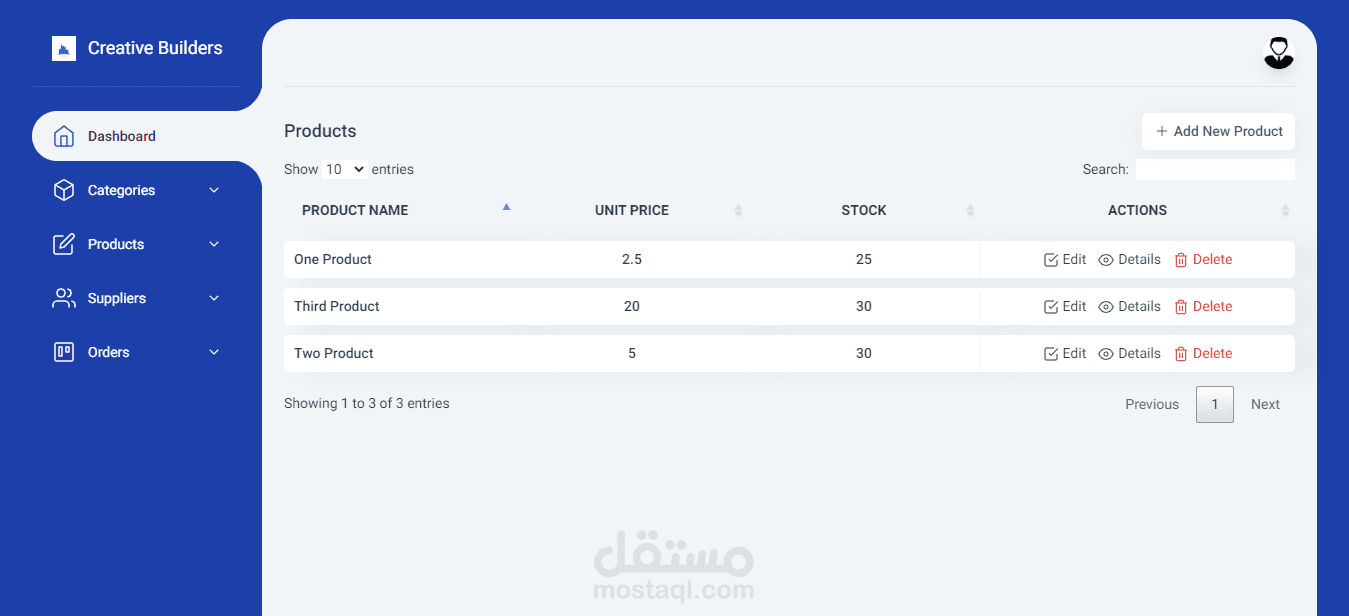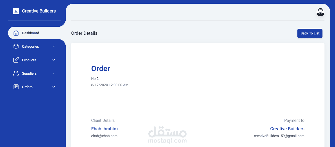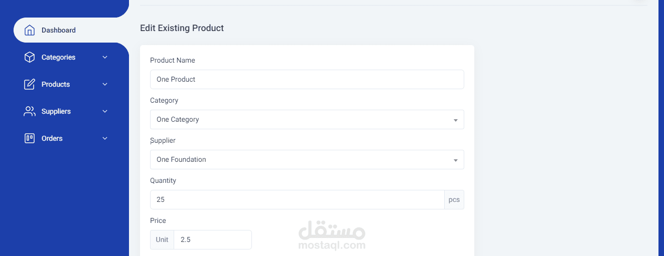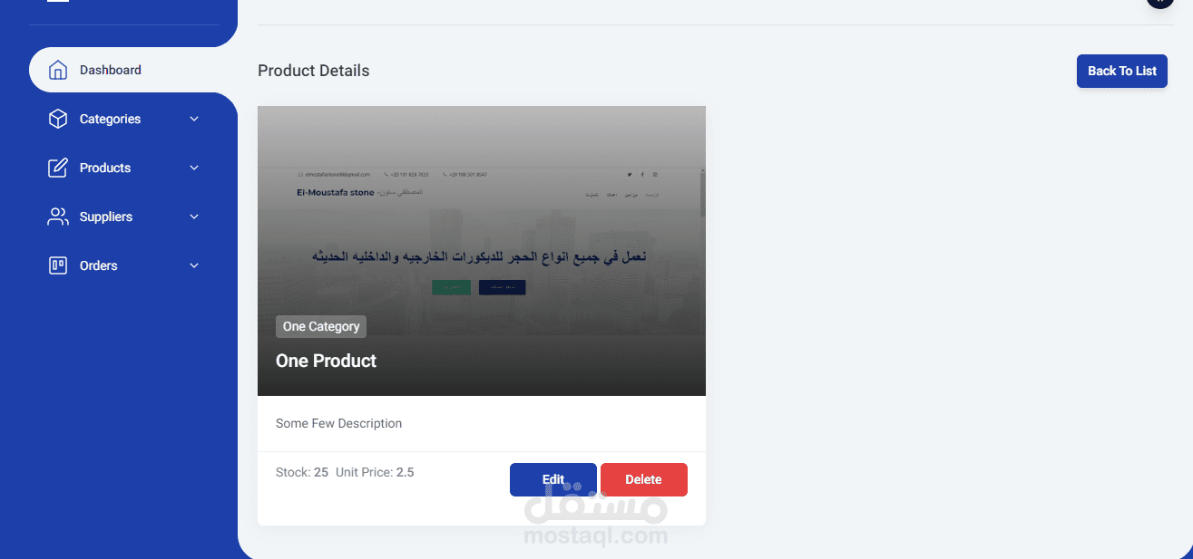 1- لوحة تحكم لاضافة وتعديل وعرض (الاصناف - المنتجات - الموردين - العملاء - الفواتير)