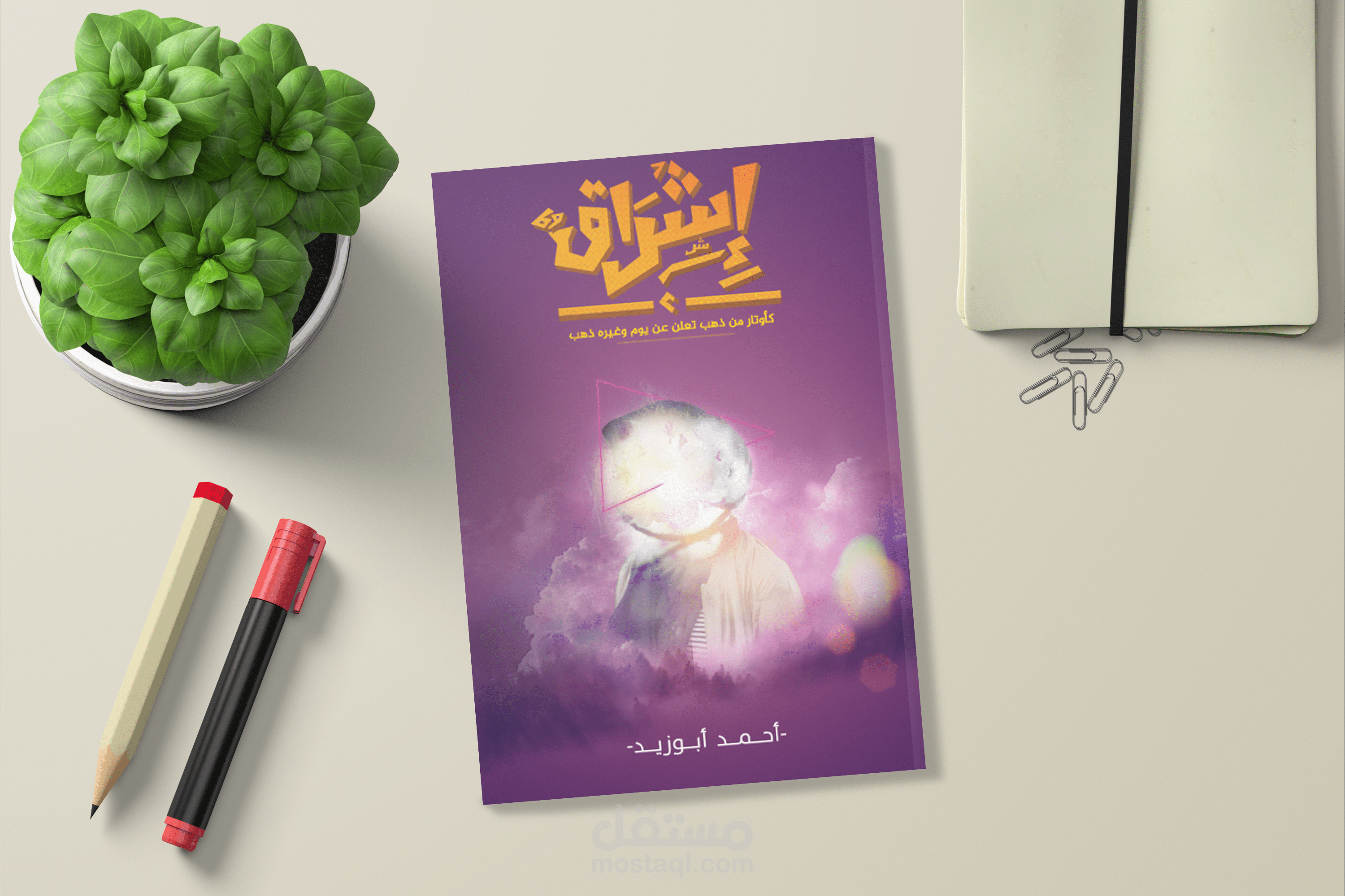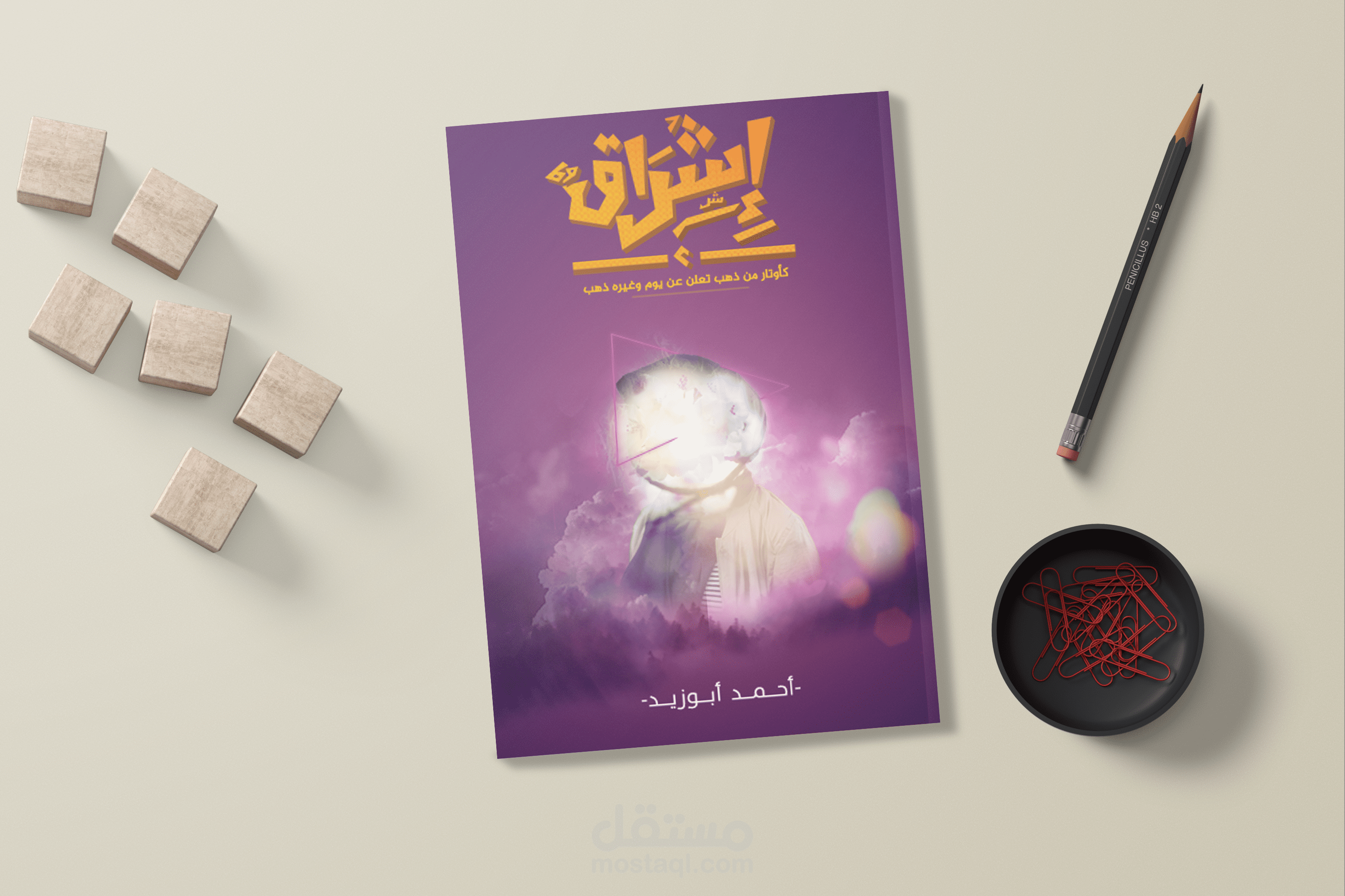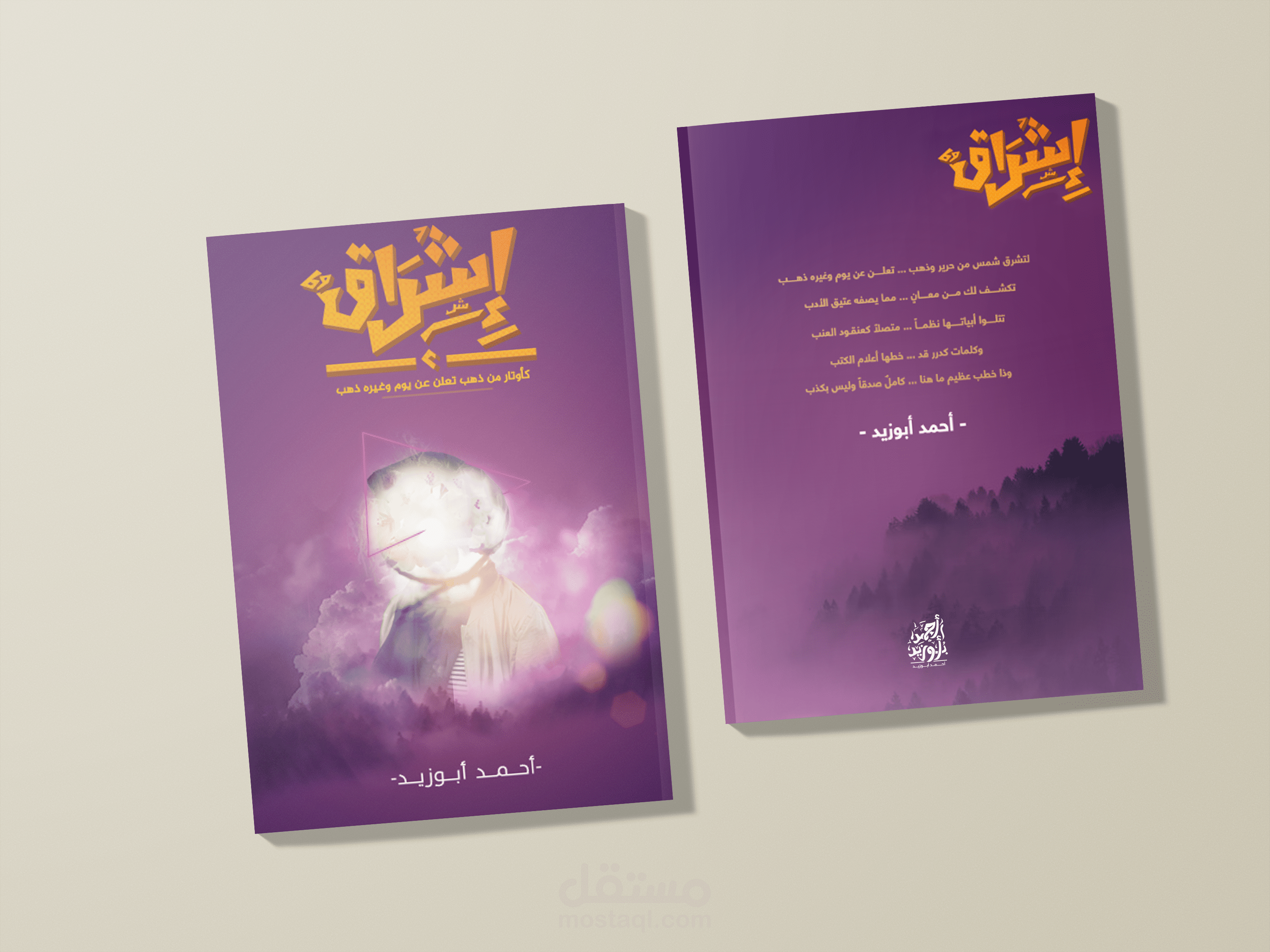Ishraq book cover design, the project contain the cover and the back of the book, also contain mockups that showing the book how it look like after printing , the full project designed by me and the design is imaginary not real and all the rights reserved - copy not allowed - reusing not allowed