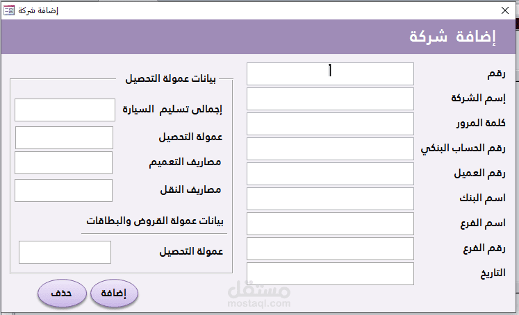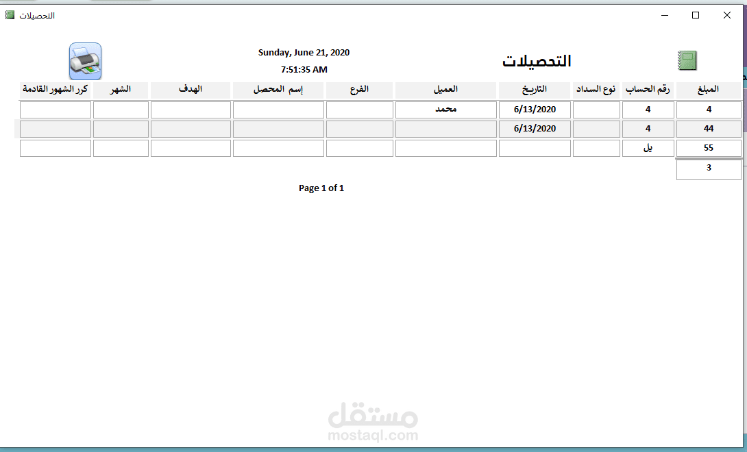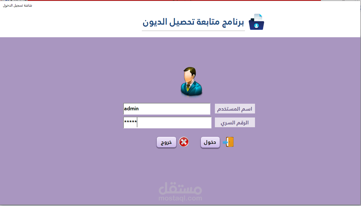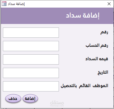 برنامج إدارة تحصيل الديون من العملاء تم التصميم باستخدام برنامج ميكرسوفت اوفس اكسس
