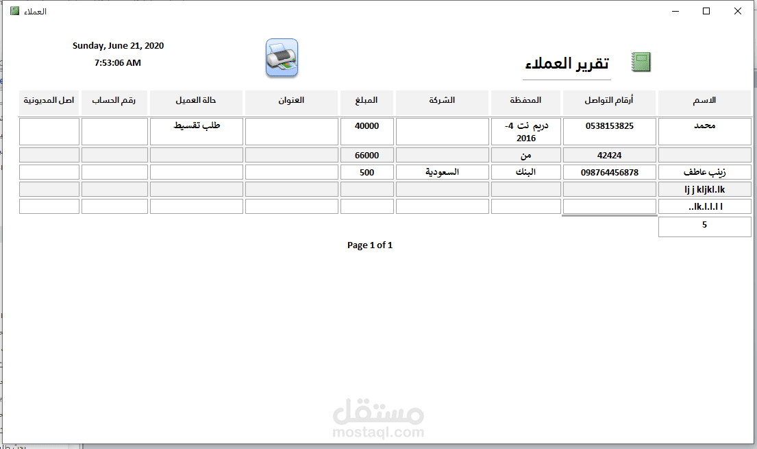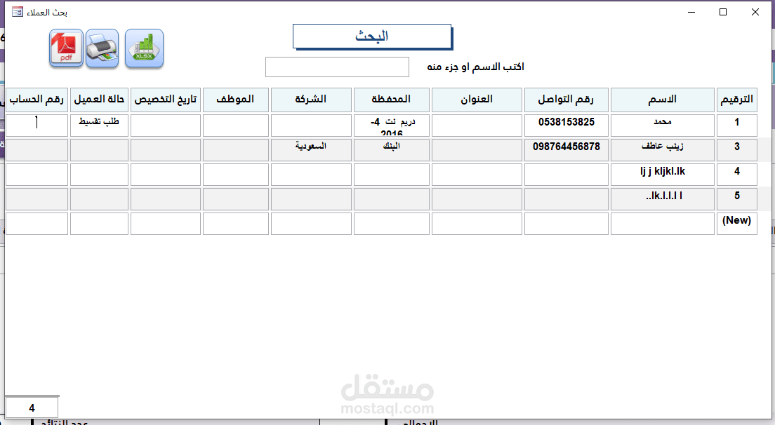 نماذج ادخال العملاء وتفاصيل المديونيات وارشيف التى تم تحصيل مديونيته