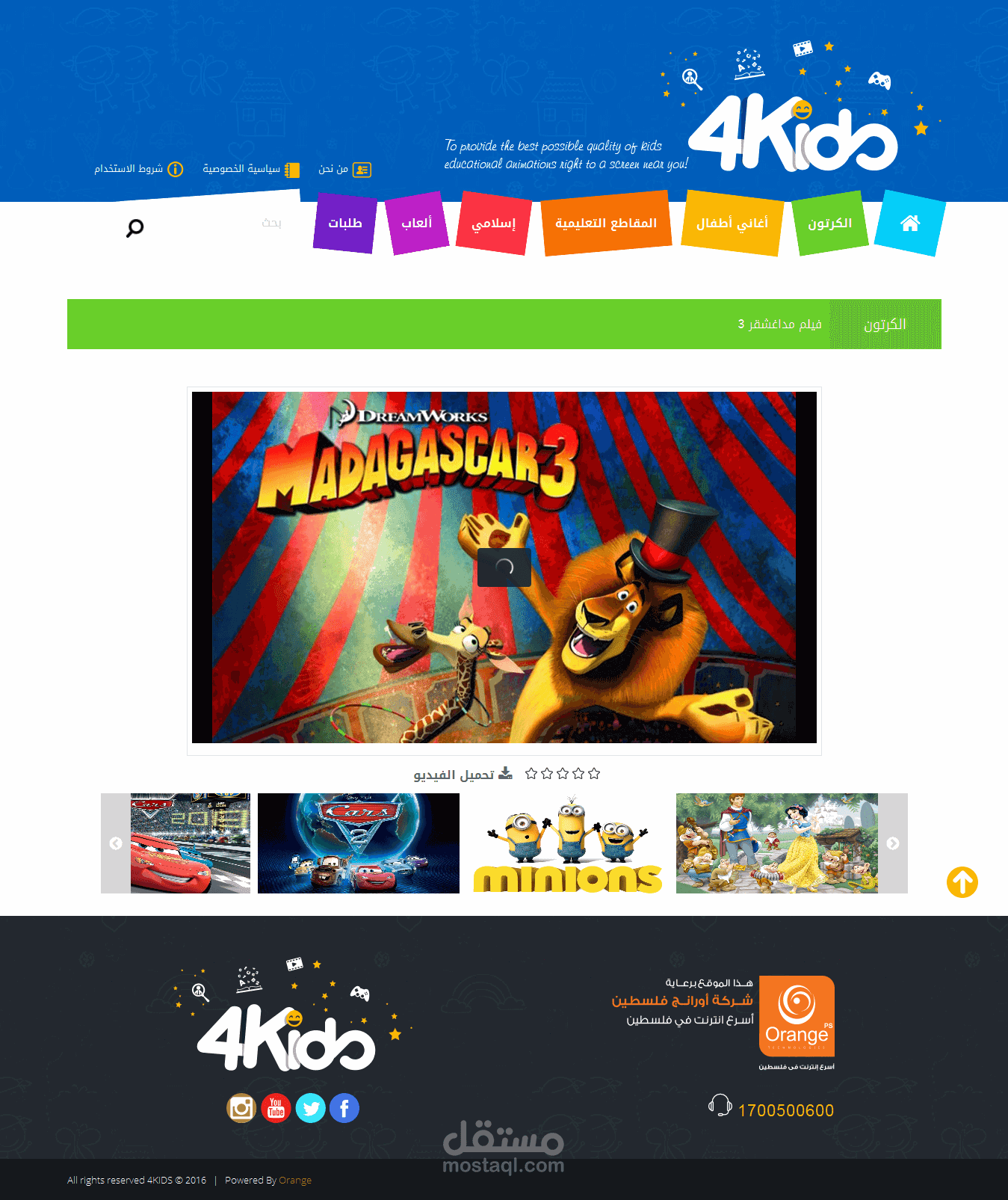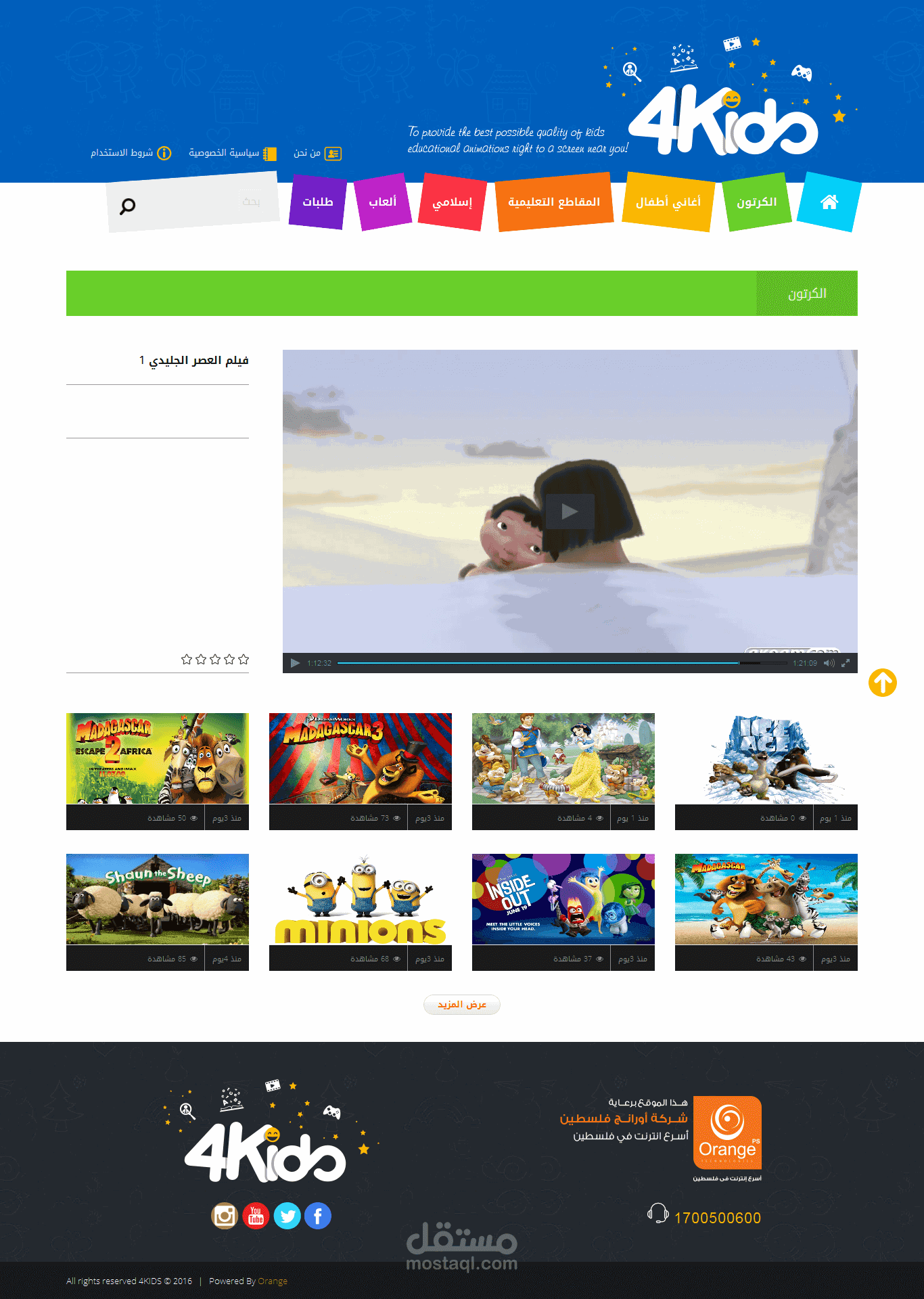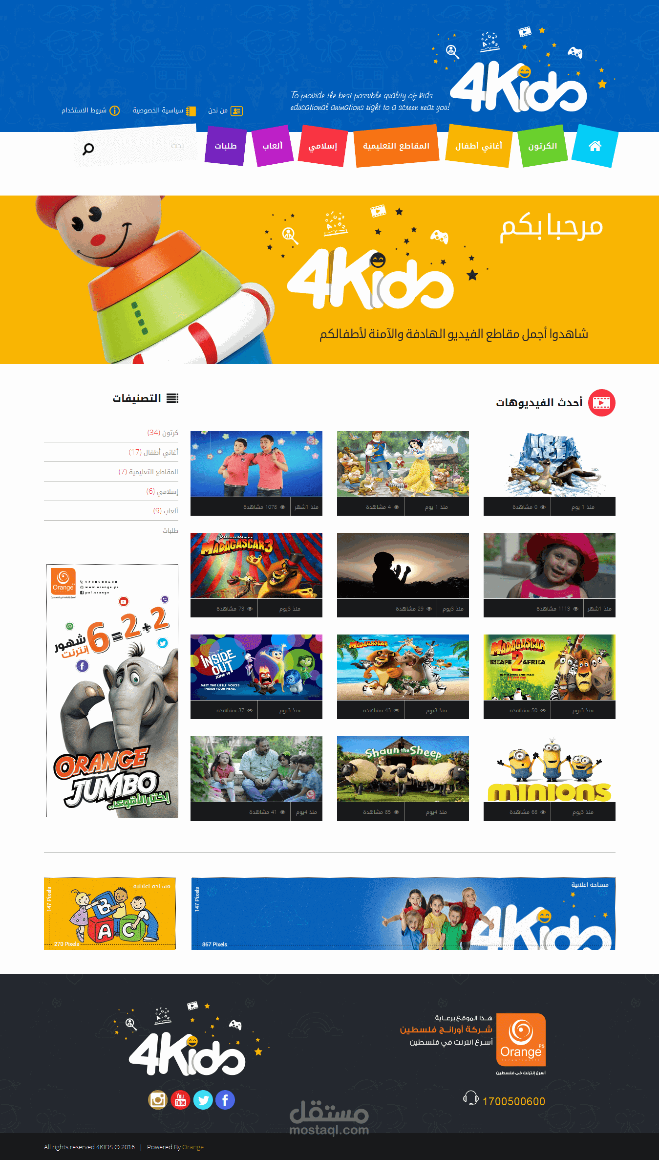 موقع فور كيدز للأطفال , وهو متاح لمشتركي أورانج فلسطين - غزة