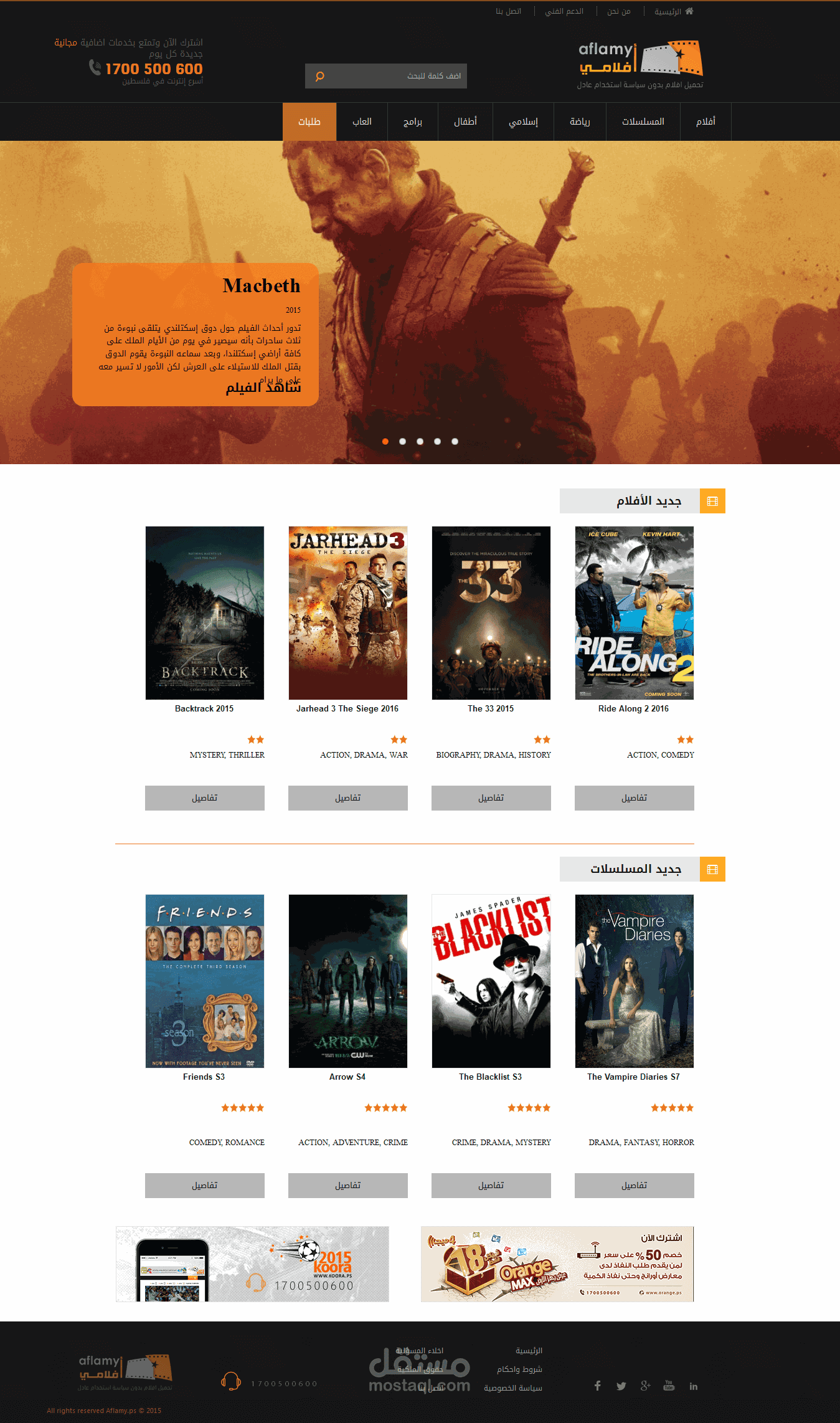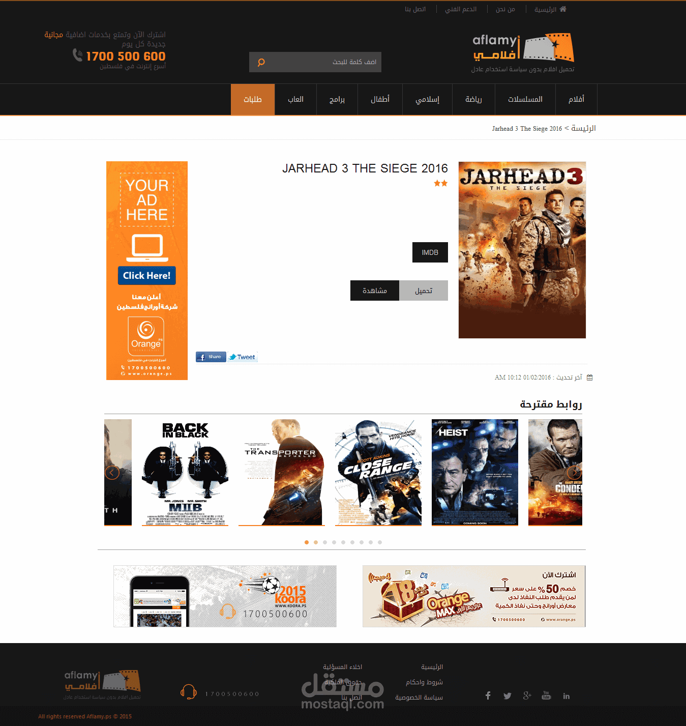 موقع أفلامي , وهو متاح لمشتركي أورانج فلسطين - غزة تم تصميم هذا الموقع و تقطيعه باستخدام html, css3 , jquery ,