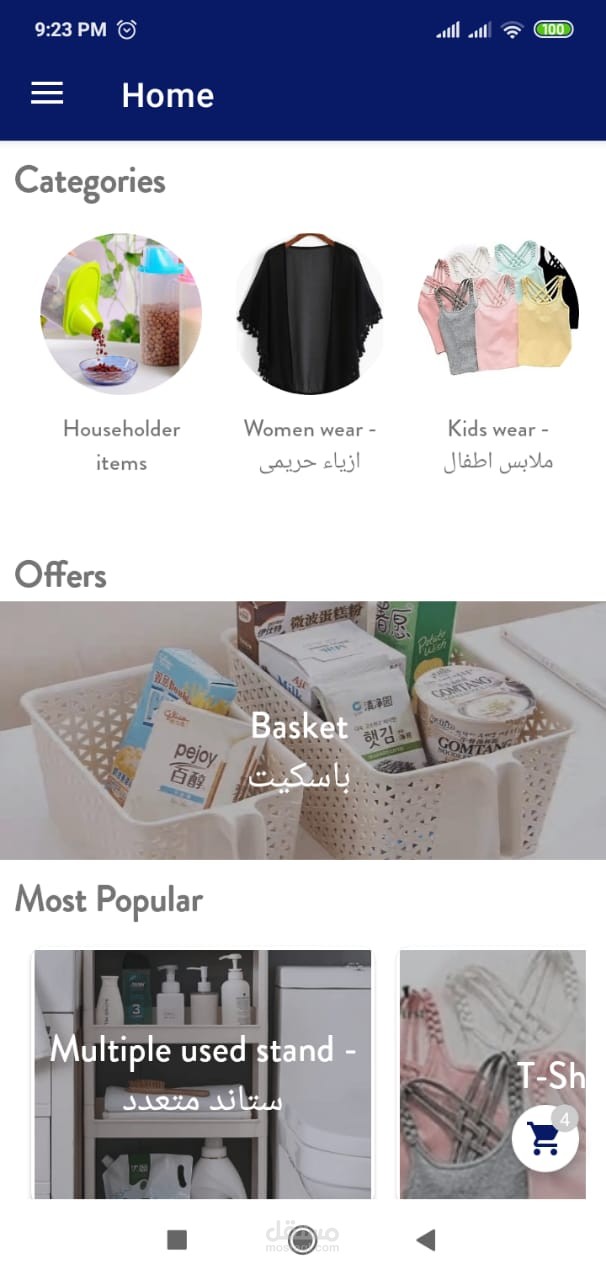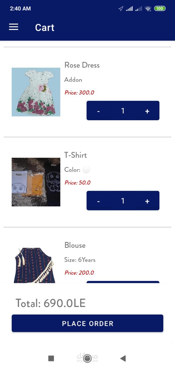 9-نسخة من التطبيق للadmin للتحكم فى التطبيق واضافة المنتجات والاقسام والتحكم بها (حذف - تعديل - اضافة)+ قسم متابعة الطلبات وتغيير حالتها وتلقى الاشعارات بها + خاصية ارسال اشعارات يدوية لجميع المستخدمين للاعلان عن المنتجات الجديدة او ما شابه مع امكانية ارسال صورة مع الاشعار
