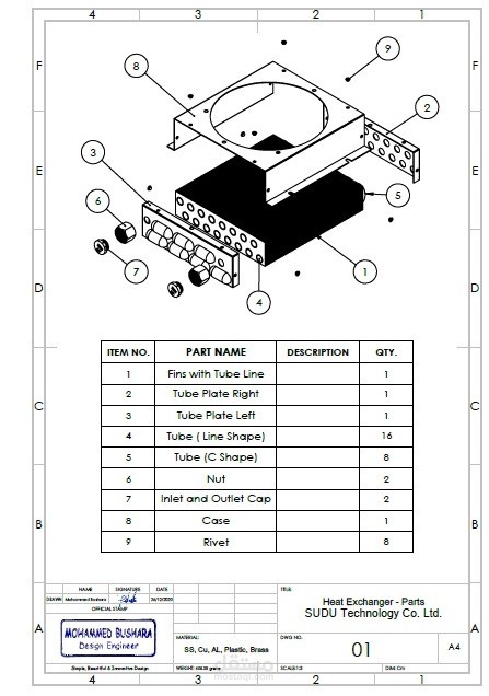 قمت بتصميم المبادل الحرارى من نوع (A30 Model) .. لشركة سودانية ناشئة متخصصة فى مجال الطاقة المتجددة.