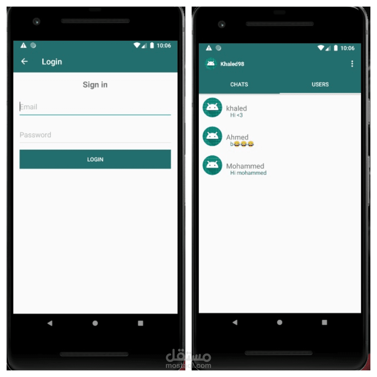 التطبيق باختصار بسيط عبارة عن Chat تم عمله عن طريق Firebase Services وهي(Realtime Messaging) .