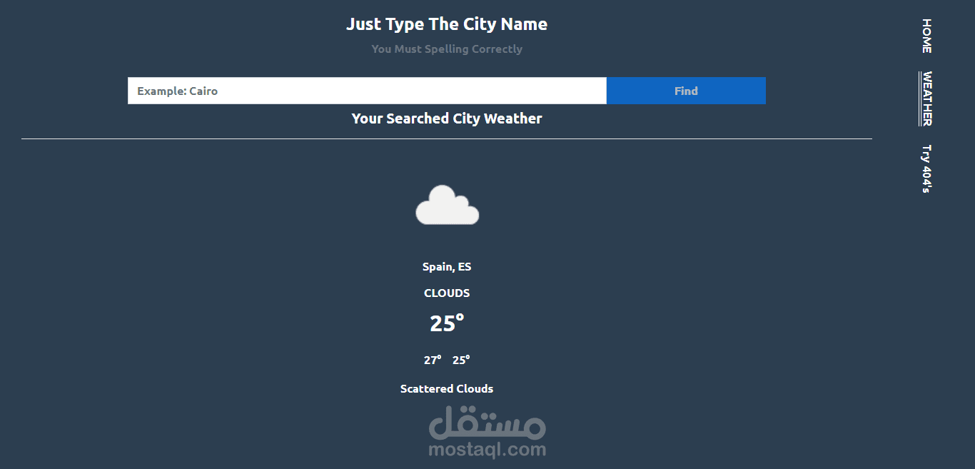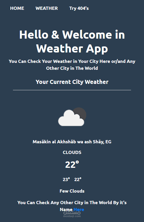 plus the User Can check any city's current weather with another route and Form