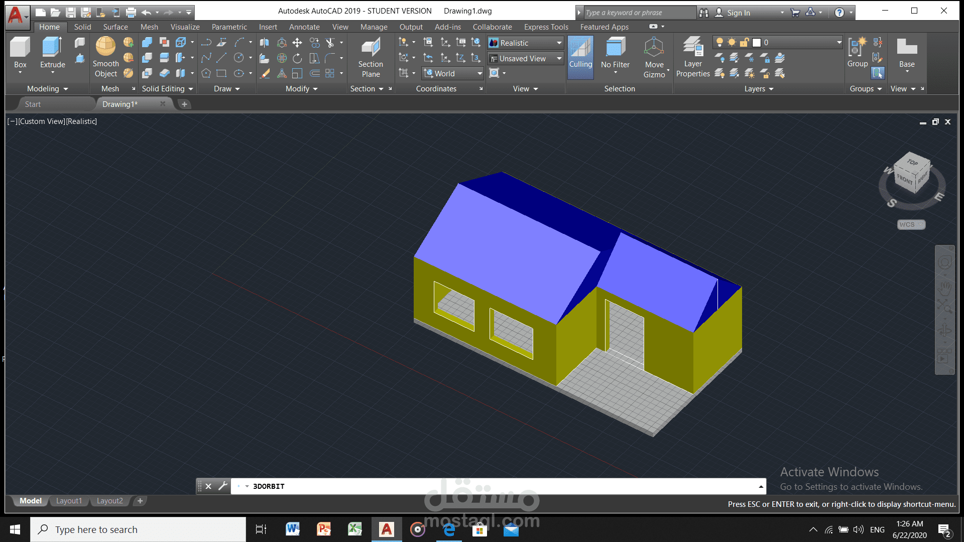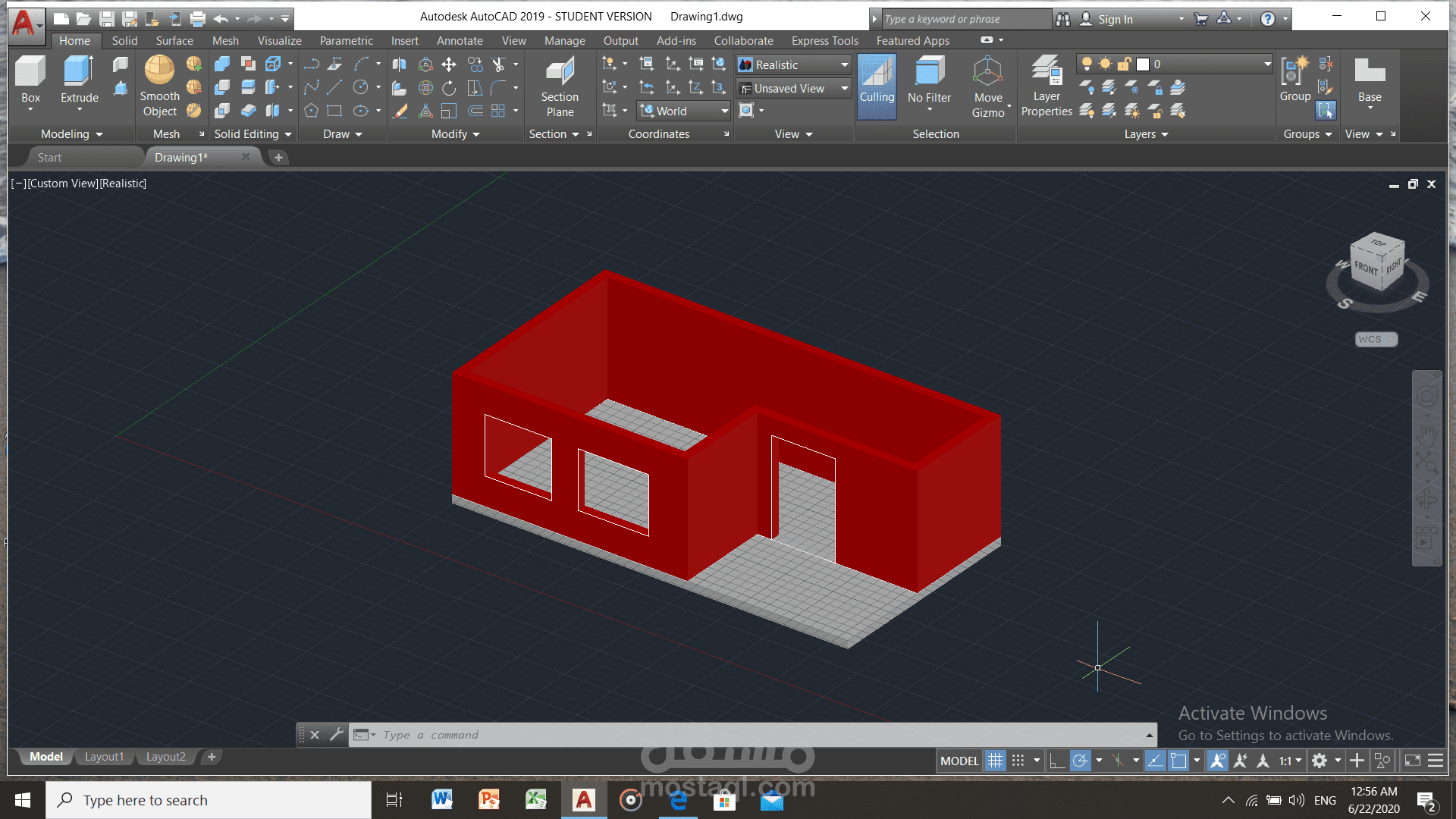 مشروع رسم ثلاثي الابعاد على اوتوكاد و تباين الِشبابيك و الابواب و استخدام اوامر سبتراكت و اكسترود