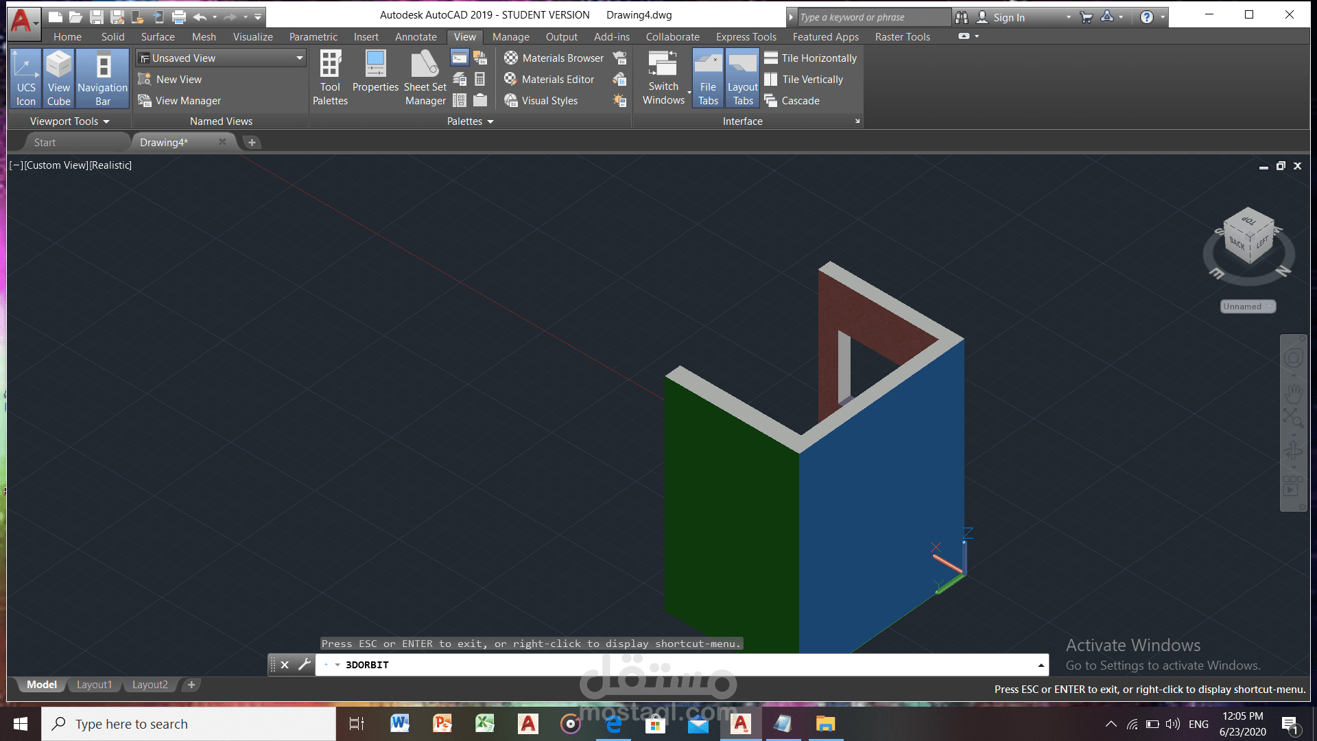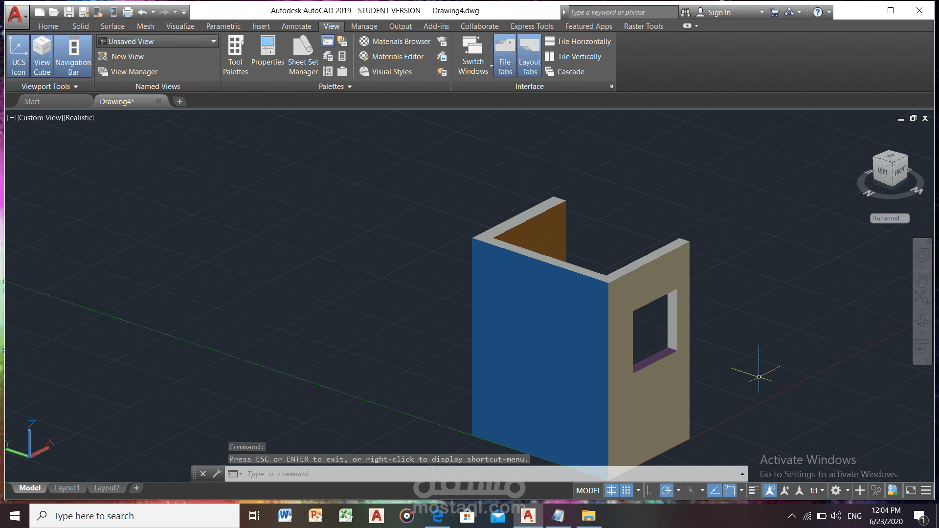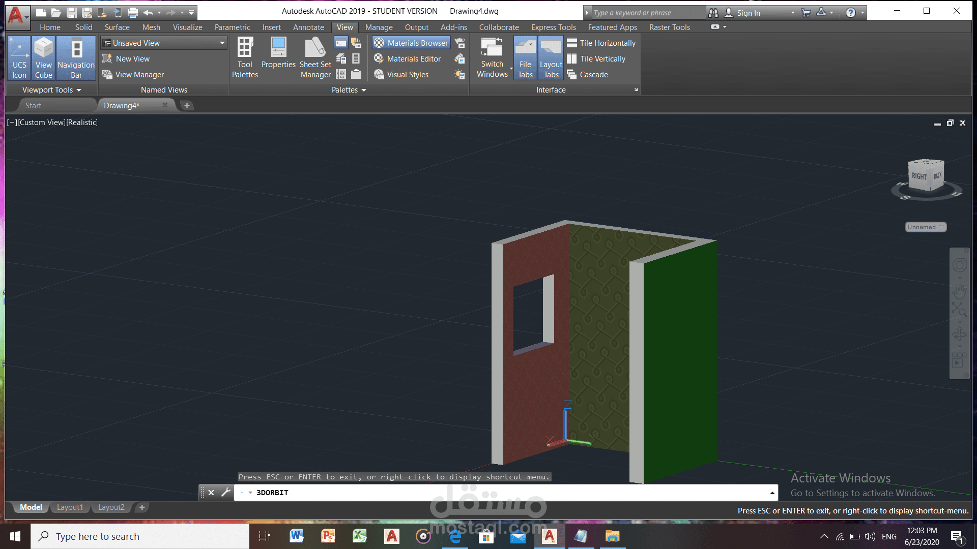 رسم ثلاثي لابعاد باستخدام اوتوكاد و ادخال ورق حائط علو النموذج
