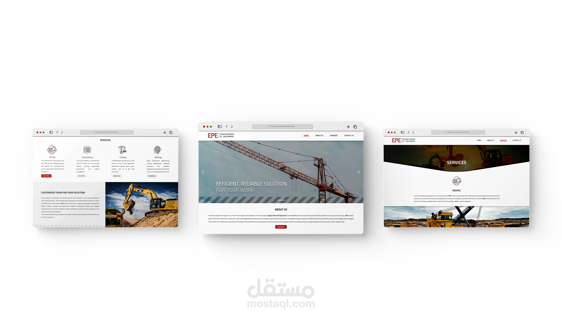 تصميم واجهات موقع Eagles Power & Equipment