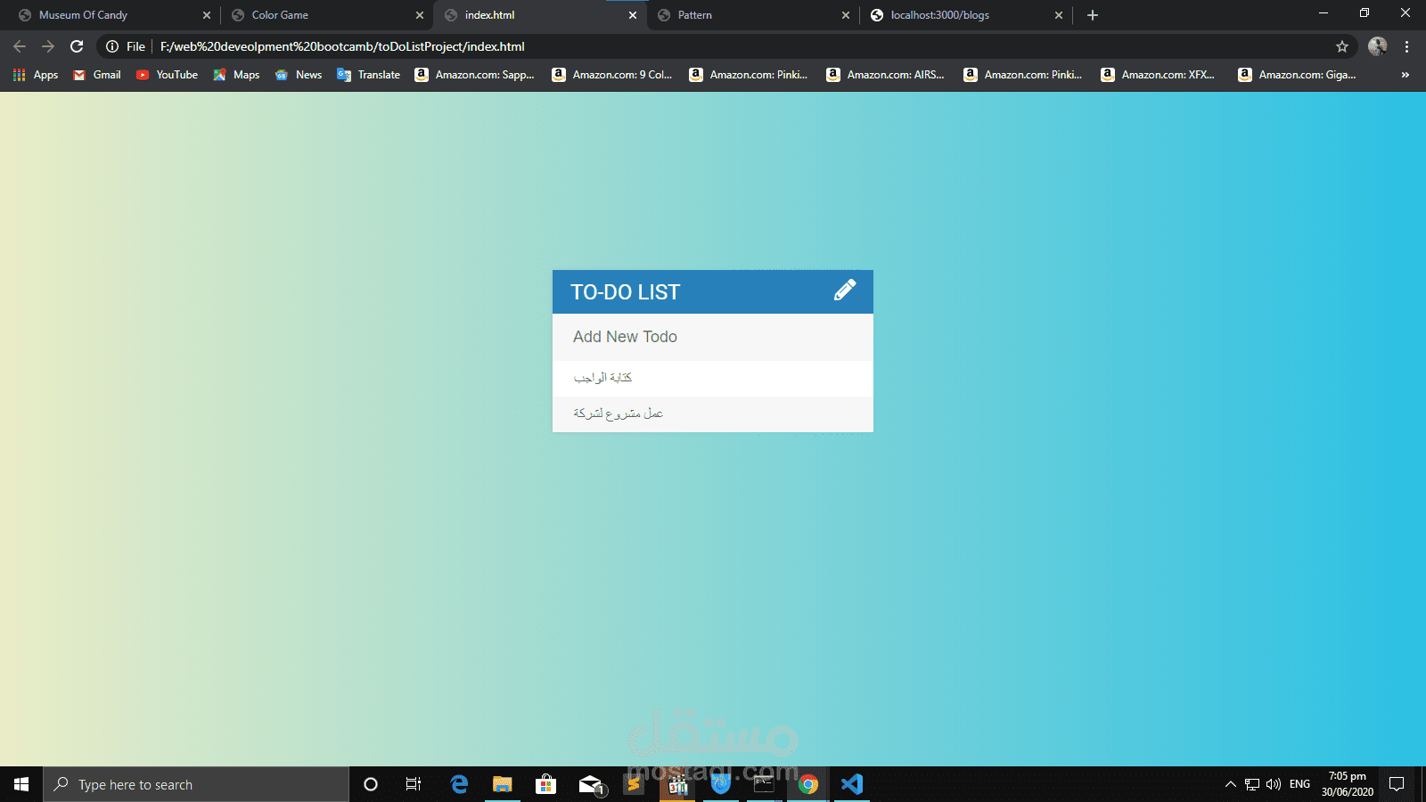 برنامج ويب لاضافة وتعديل وازالة مهام مصمم باستخدام javascript , html , css