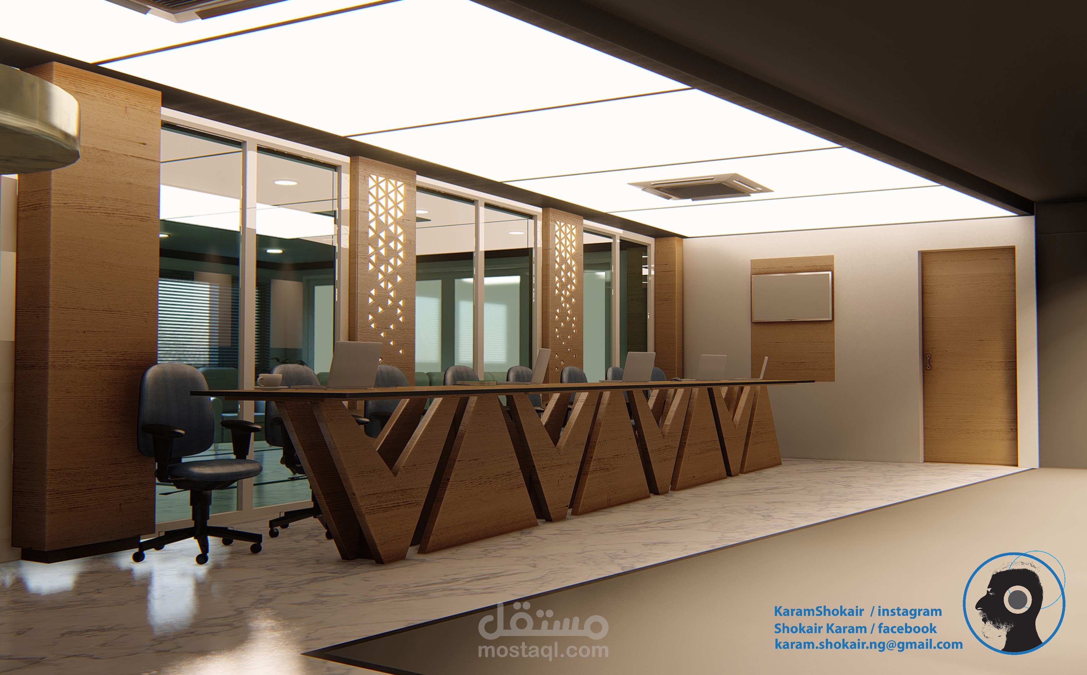 أفكار لركن الاستقبال وركن مكاتب العمل في شركة Dufil