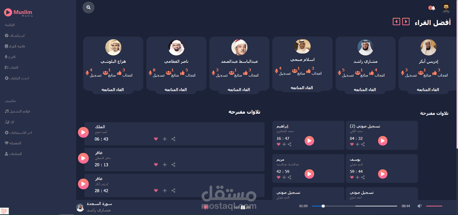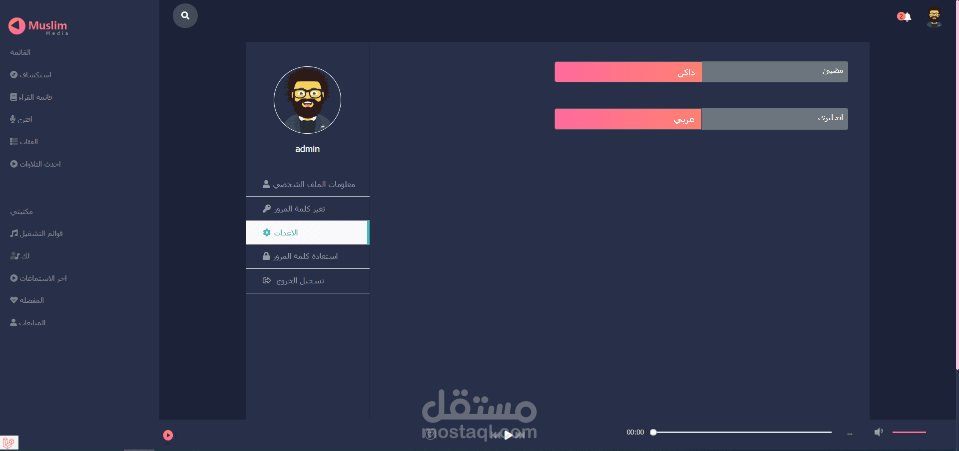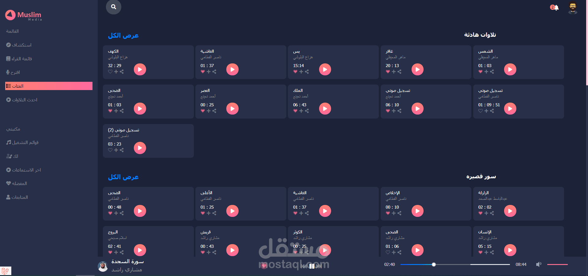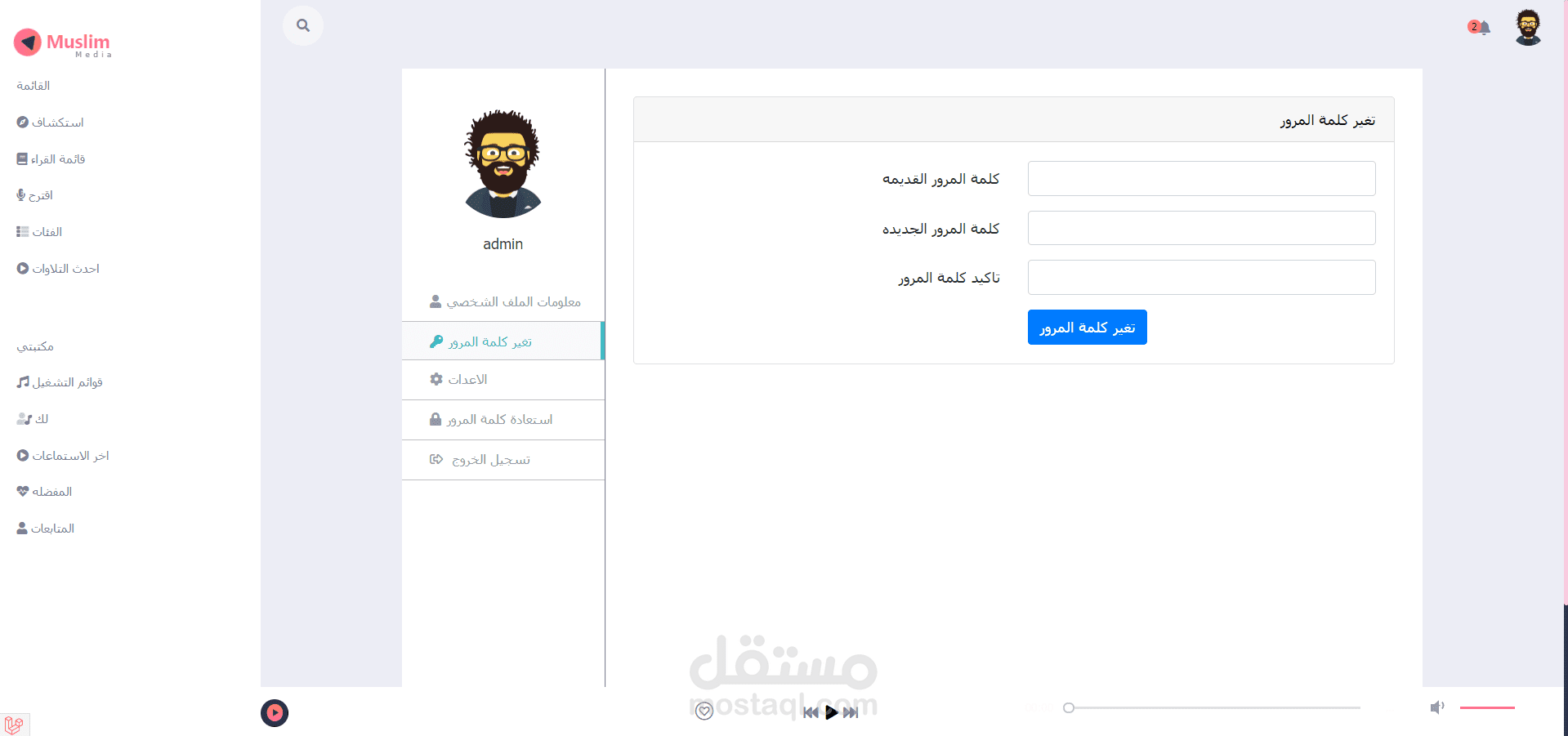 موقع صوتيات متكامل مثل الساوند و انعامي لاكن للقران الكريم بلوحة تحكم في الموقع متكامله