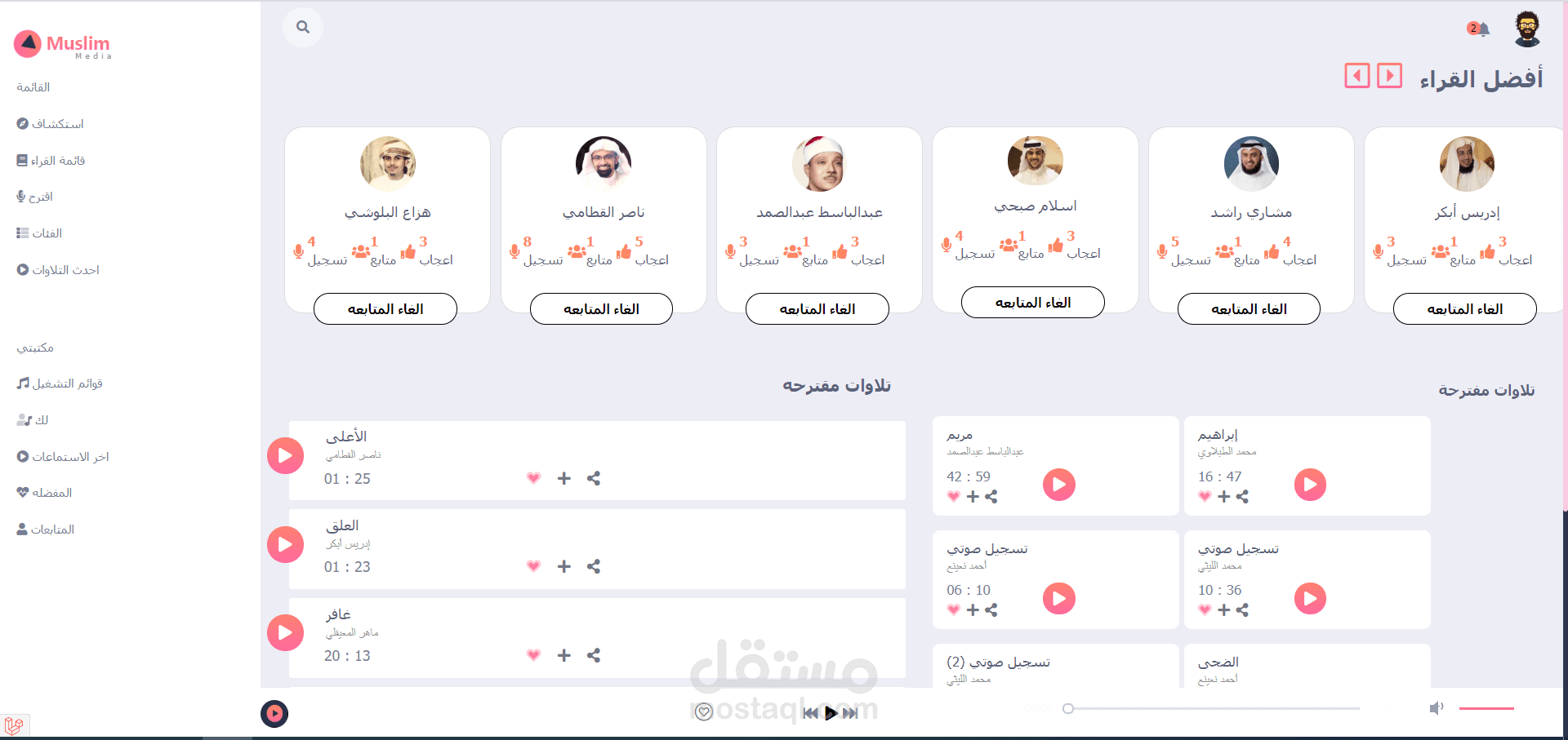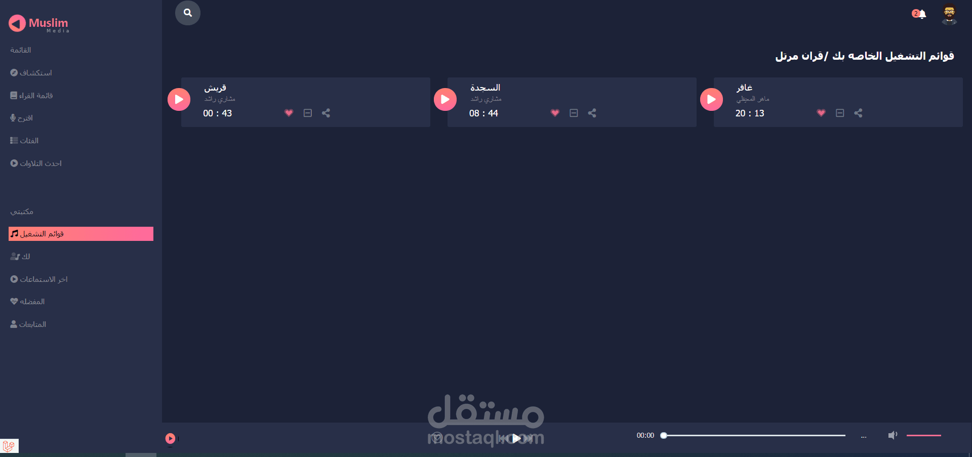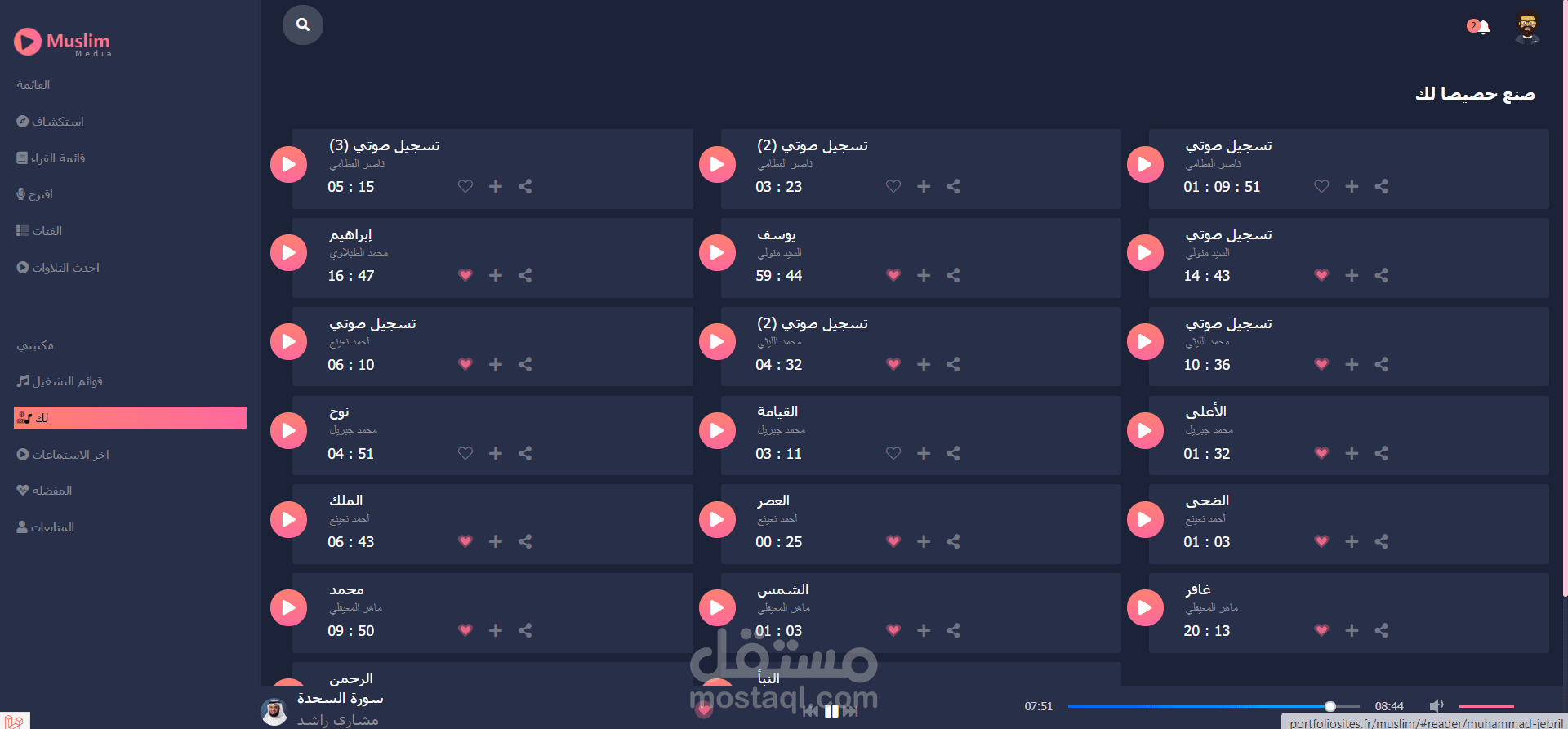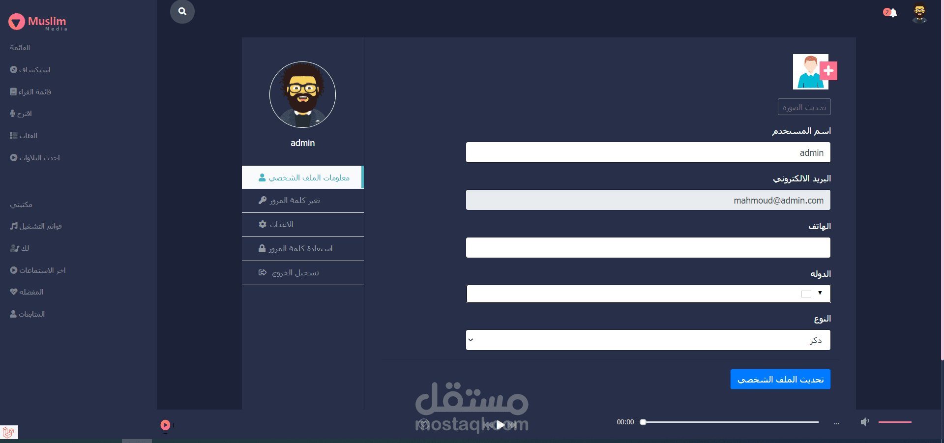 موقع صوتيات متكامل مثل الساوند و انعامي لاكن للقران الكريم بلوحة تحكم في الموقع متكامله