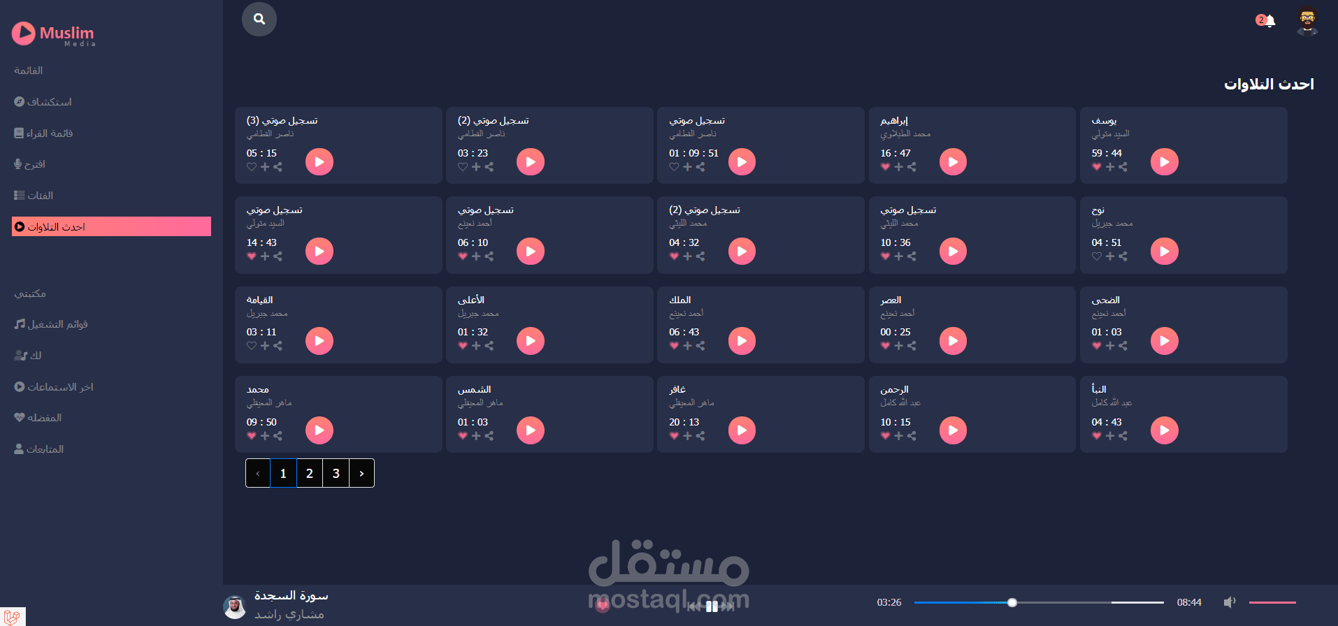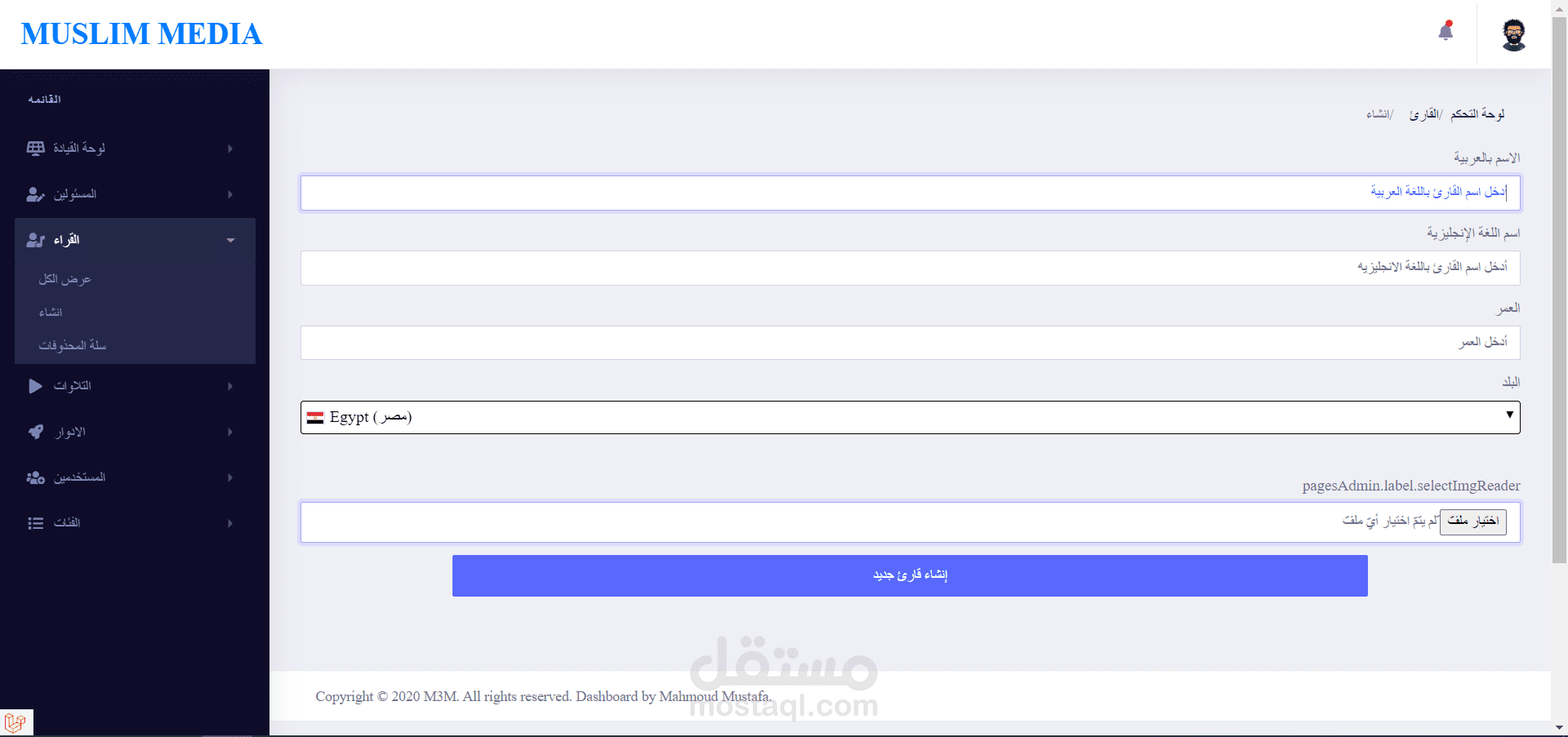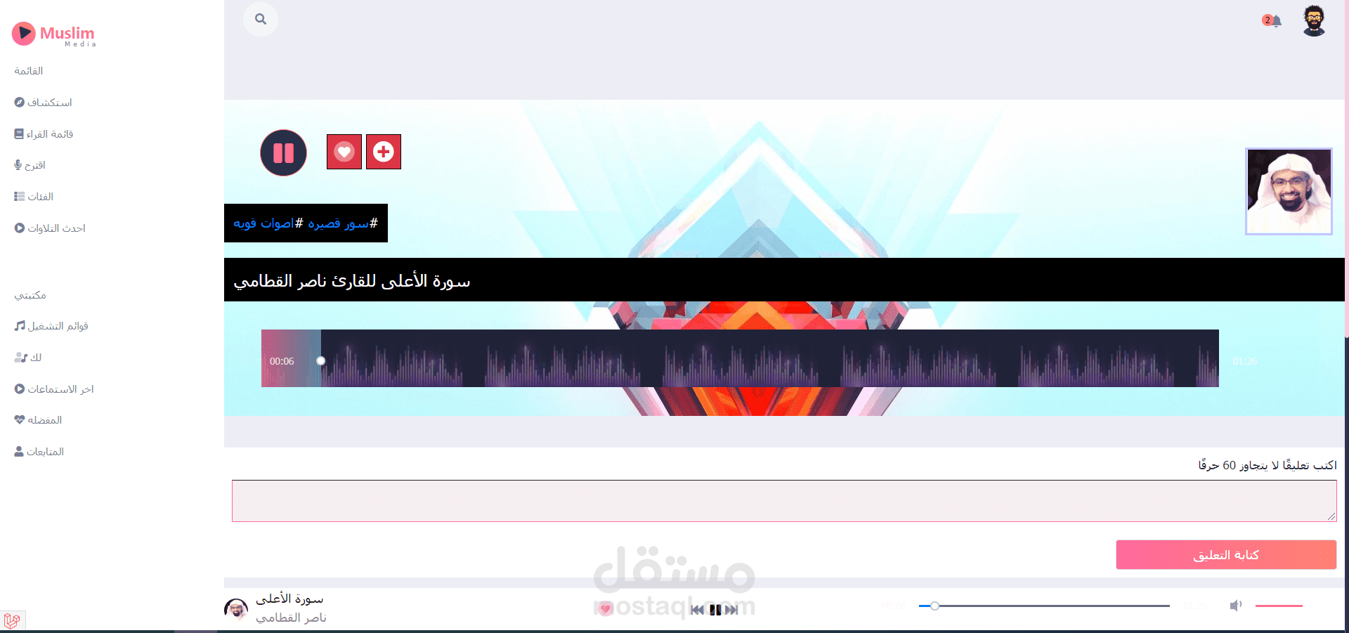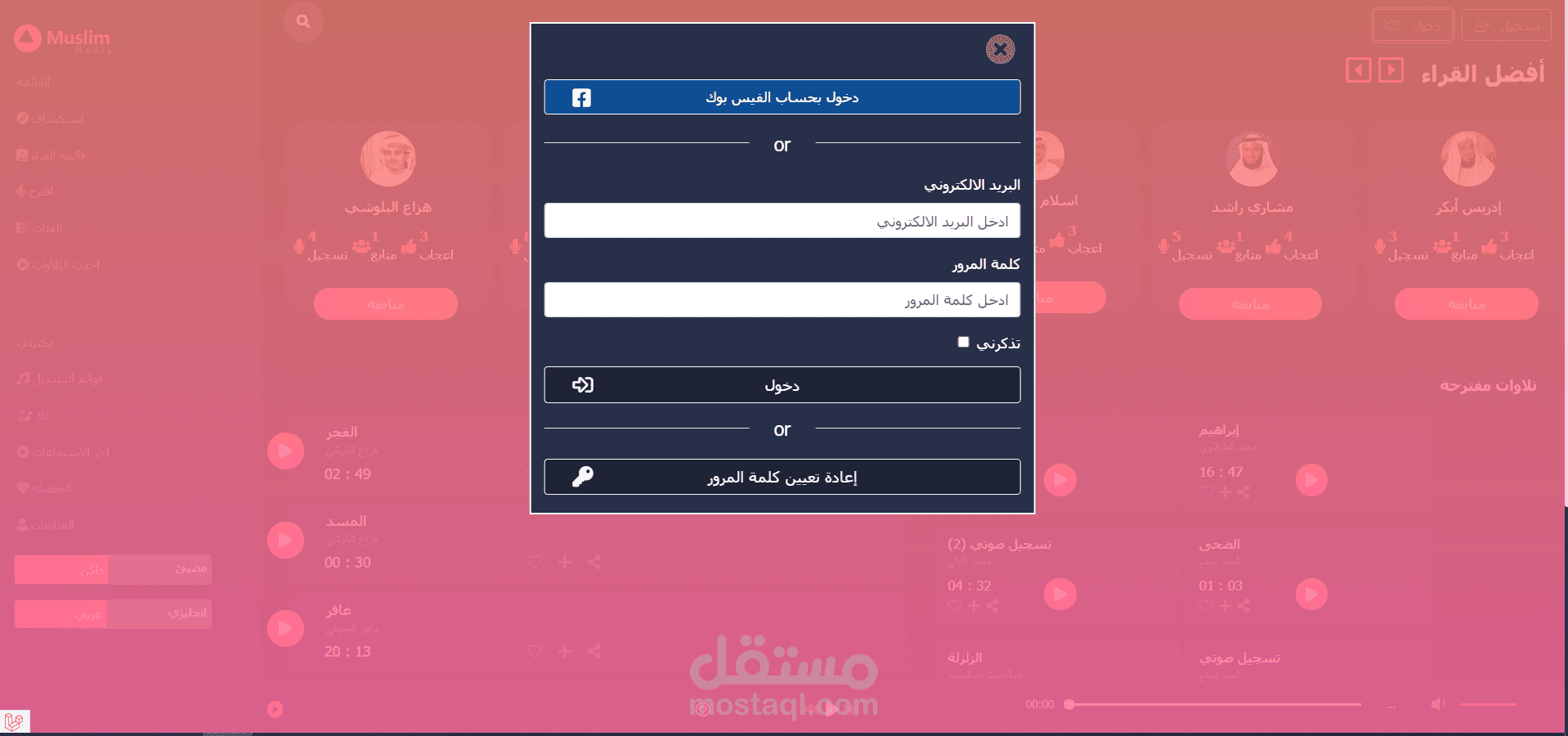 موقع صوتيات متكامل مثل الساوند و انعامي لاكن للقران الكريم بلوحة تحكم في الموقع متكامله