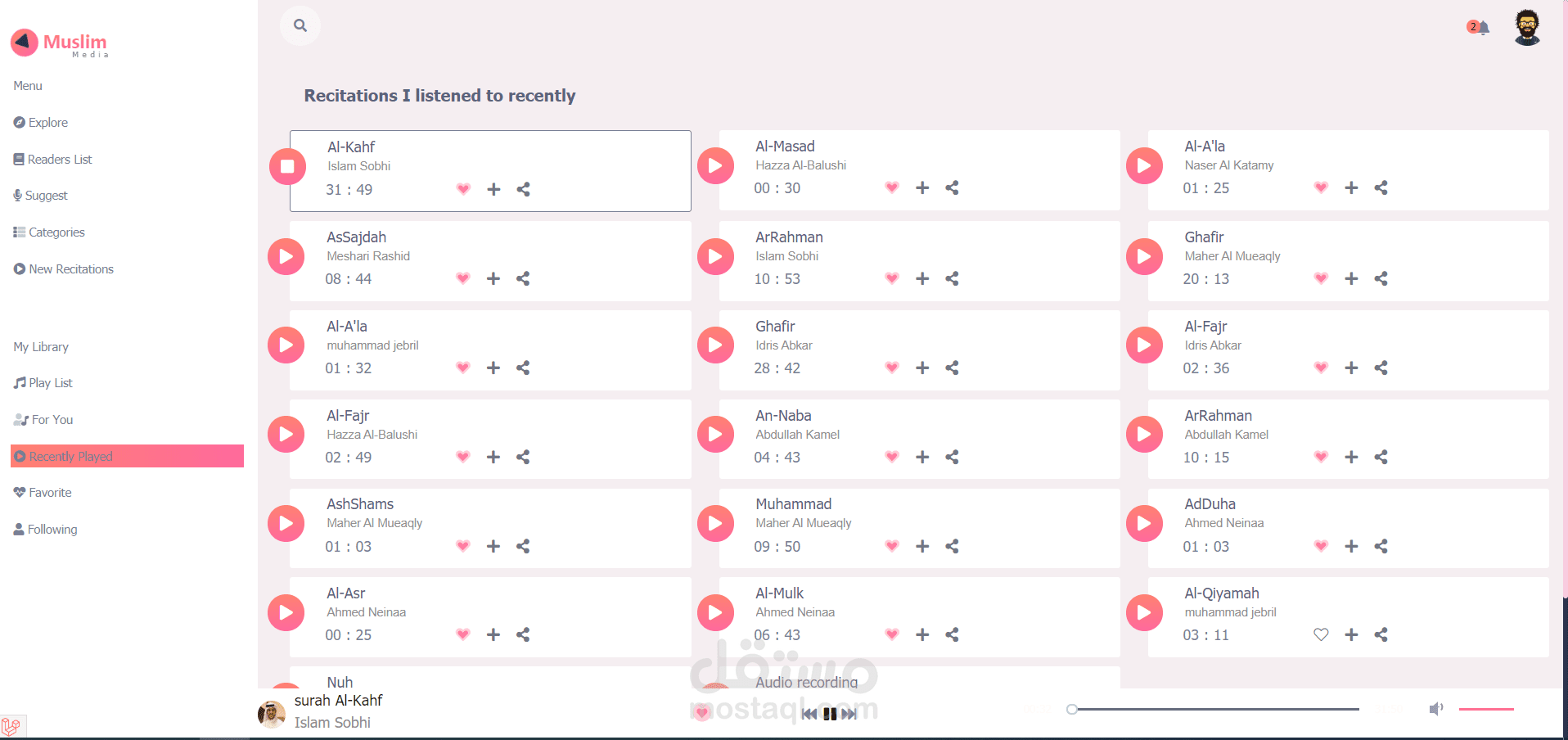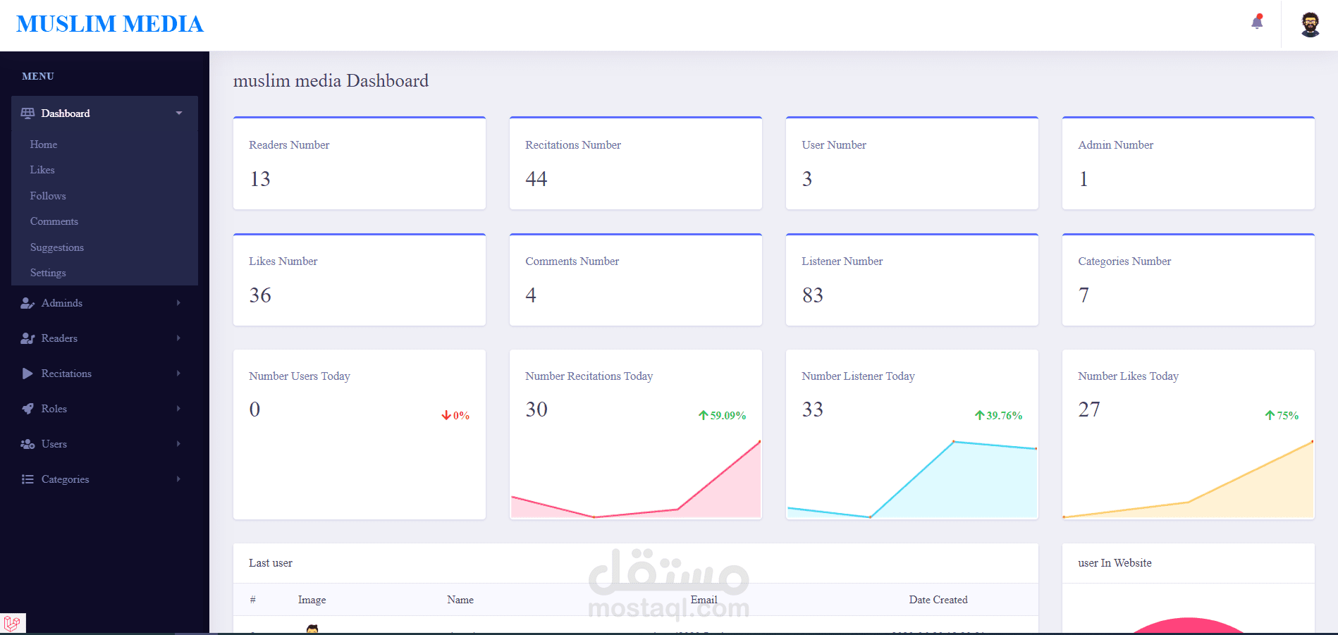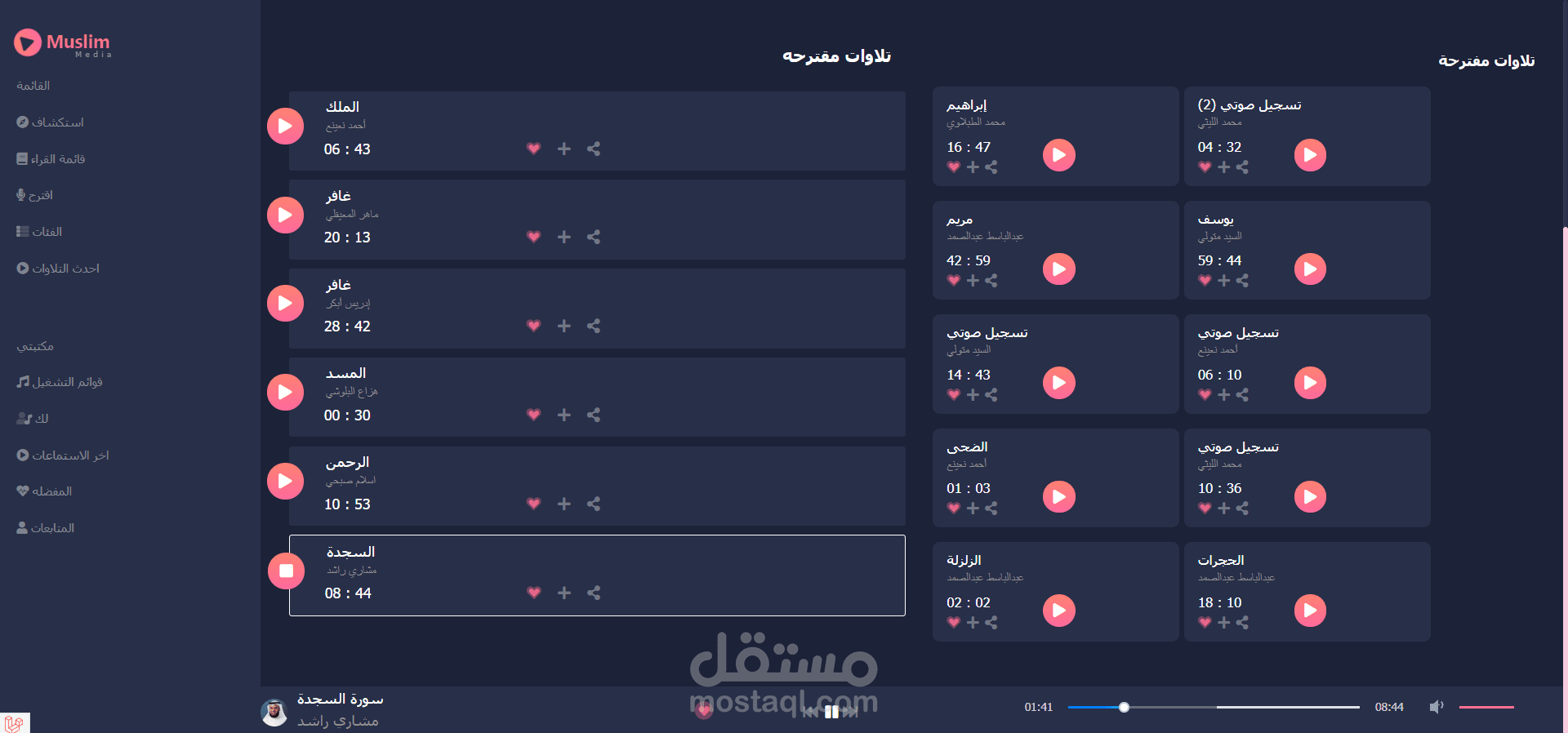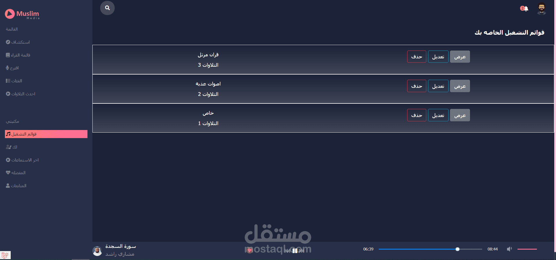 موقع صوتيات متكامل مثل الساوند و انعامي لاكن للقران الكريم بلوحة تحكم في الموقع متكامله