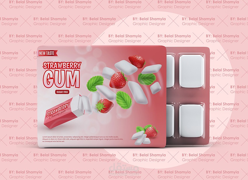 تصميم علبة ليدن بطعم الفرولة قمت بعمله كتصميم افتراضي فقط ,, انا مصمم متمكن ومتميز وقادر على عمل تغليف لاي منتج ولاي علبة او بكيت او كرتونة بتصاميم جديدة وانيقة بألوان عصرية